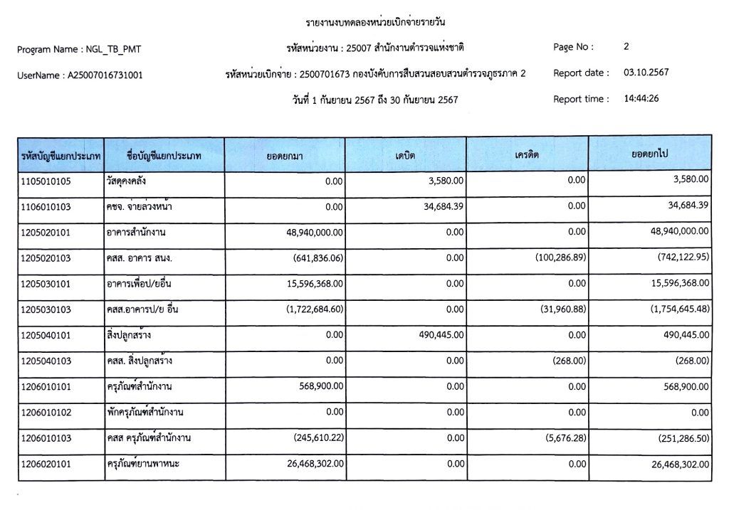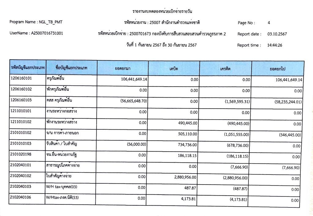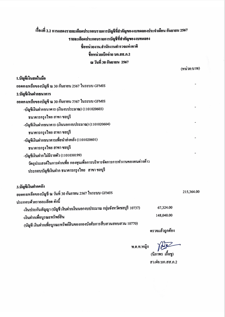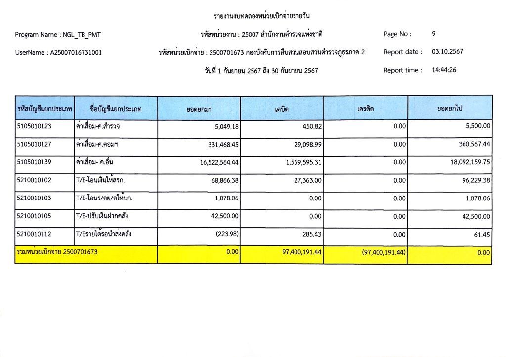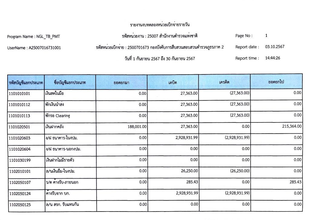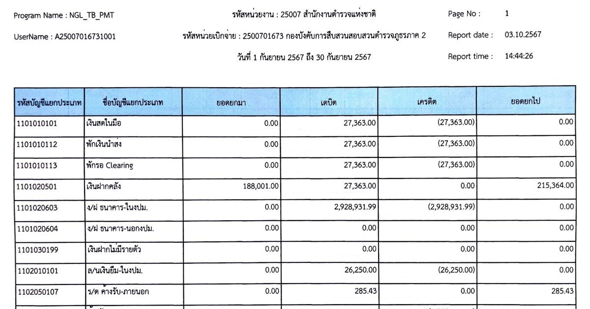 งบทดลองเบิกจ่ายประจำเดือน กันยายน พุทธศักราช 2567