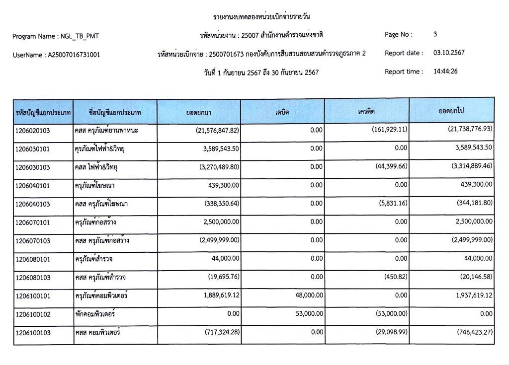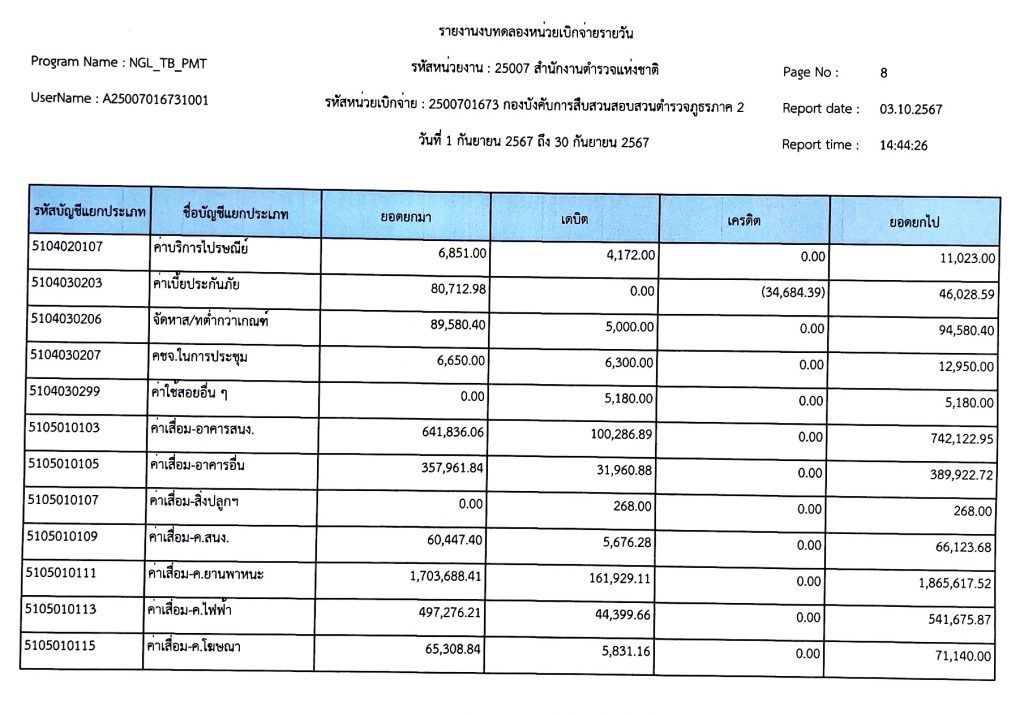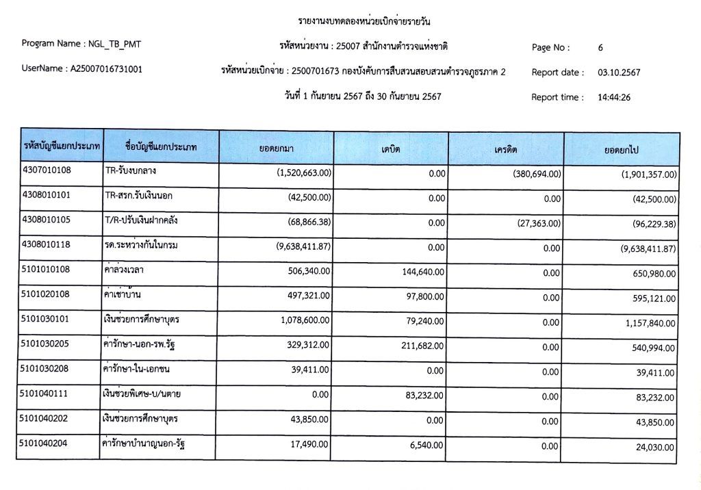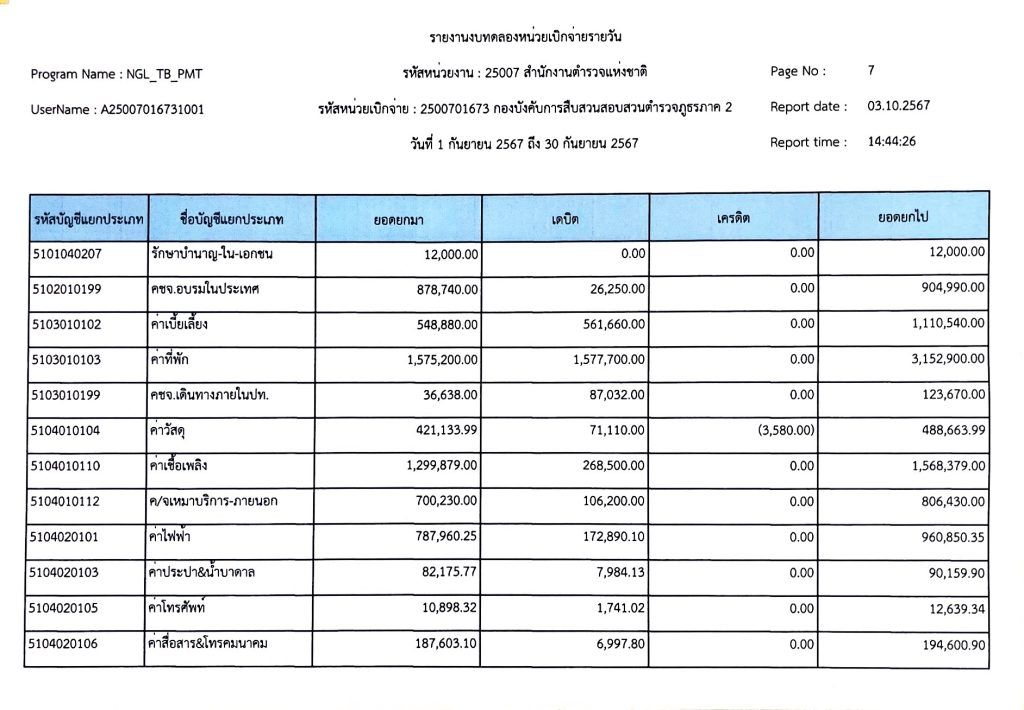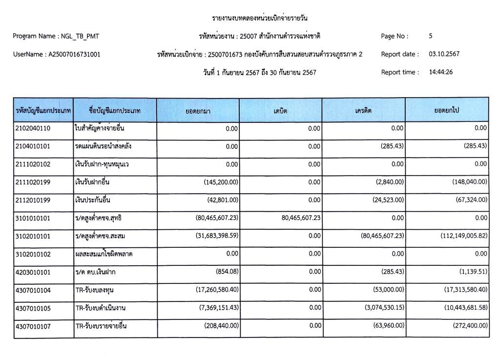 งบทดลองเบิกจ่ายประจำเดือน กันยายน พุทธศักราช 2567