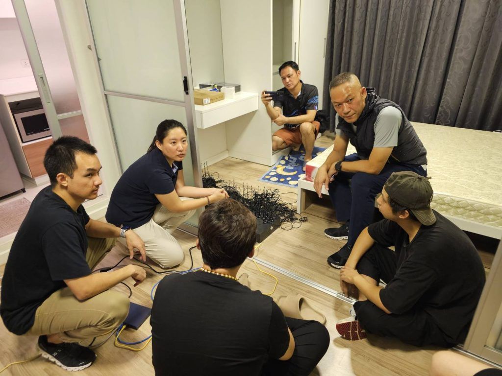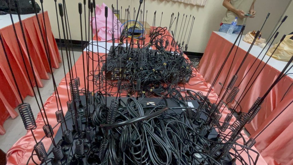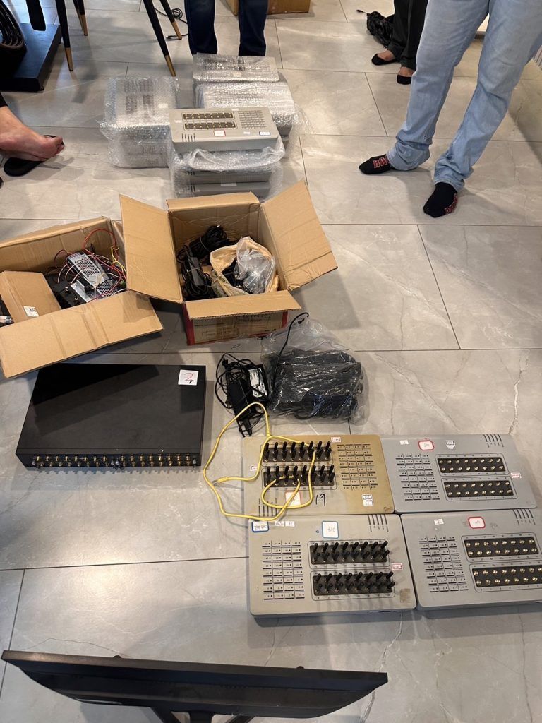 จากนั้นจึงได้เชิญคนที่รออยู่ในรถอีก 2 คนมาด้วย โดยทั้ง 3 คนรับว่าได้นำเครื่อง SIMBOX หรือ GSM GATEWAY 3 เครื่องมาติดตั้งที่คอนโด อีก 2 เครื่องติดตั้งอยู่บนห้อง และตรวจค้นรถยนต์พบซิมการ์ดโทรศัพท์อีกจำนวนมาก