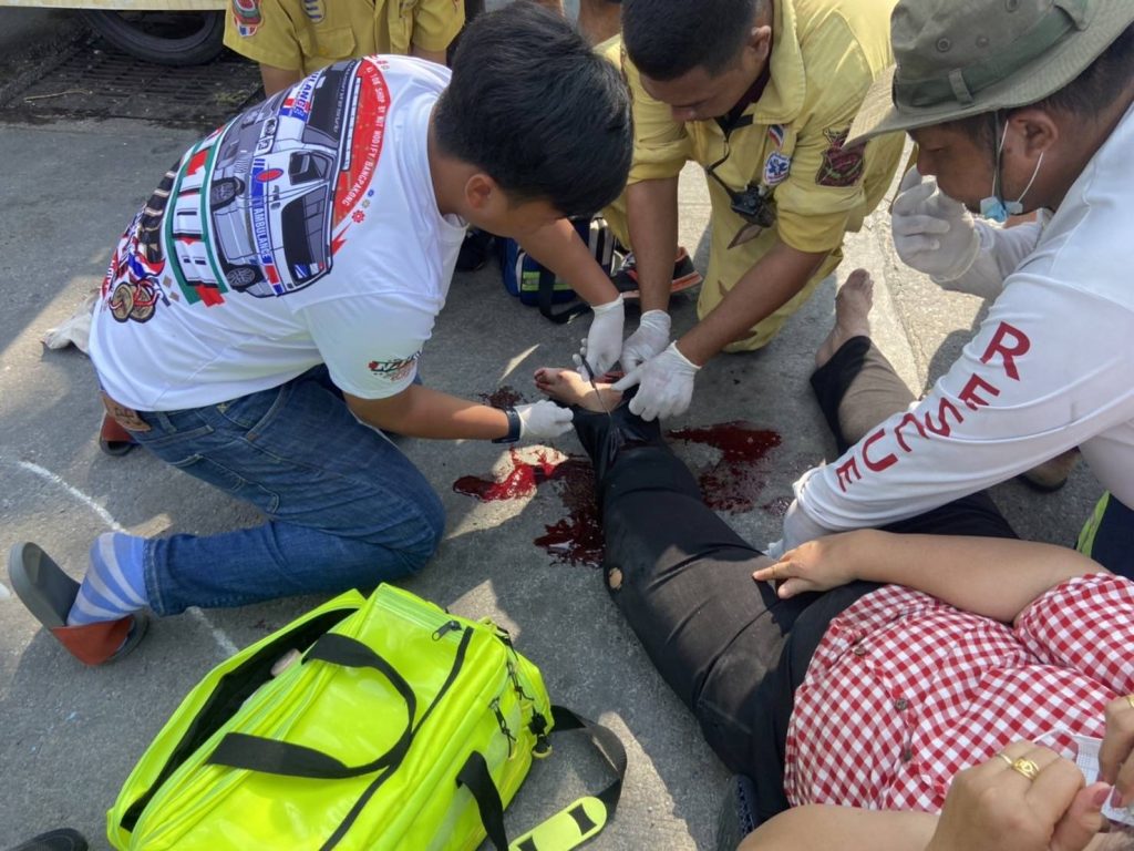 วันนี้ (21 มี.ค.66) เวลา 09.30 น. ส.ต.ท.ธนารัตน์ วันเพ็ญ ผบ.หมู่ กก.ปพ.บก.สส.ภ.2 ทำหน้าที่ชุดปฏิบัติการพิเศษบูรพา 491 ให้การช่วยเหลือห้ามเลือดผู้บาดเจ็บ เหตุอุบัติเหตุรถจักรยานยนต์ล้ม เป็นเหตุให้คุณป้าถูกวัสดุมีคมจากรถจักรยานยนต์บาด เสียเลือดมาก โดยได้ใช้ทักษะการฝึกการปฐมพยาบาลทางยุทธวิธีในการห้ามเลือดโดยไม่มีอุปกรณ์ ระหว่างที่แจ้งขอสนับสนุนสายรัดห้ามเลือดจากเวรสนาม กก.ปพ.บก.สส.ภ.2 ระหว่างรอทีมกู้ชีพมาถึงตอนนี้ผู้บาดเจ็บถึงมือทีมกู้ขีพแล้ว เหตุเกิดบริเวณหน้า7/11 กลางซอยเขาน้อยเป็นเรื่องที่น่าชื่นชมครับ