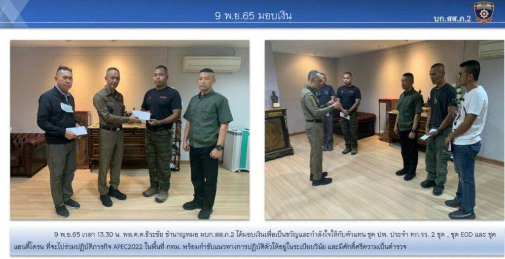 นอกจากนี้ ยังได้มีการดูแลสวัสดิการในส่วนของเครื่องไม้เครื่องมือในการทำงาน อาทิ เปลี่ยนยางรถสายตรวจ รถตูตราโล่แทนของเดิมที่เสริมสภาพ อีกทั้งมอบเงินสวัสดิการช่วยเหลือผู้ใต้บังคับบัญชากรณีเจ็บป่วย และมอบรางวัลสำหรับผู้ปฏิบัติการดีเด่น ชุดทำงานที่ผลการจับกุมดีเด่นในแต่ละเดือน รวมทั้งเงินสวัสดิการเพื่อเป็นขวัญกำลังใจสำหรับข้าราชการตำรวจที่เดินทางไปปฏิบัติหน้าที่ในงานการประชุมสุดยอดผู้นำเอเปค ที่จัดขึ้นระหว่างวันที่ 18 – 19 พฤศจิกายนที่ผ่านมาด้วย