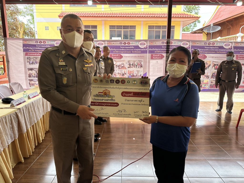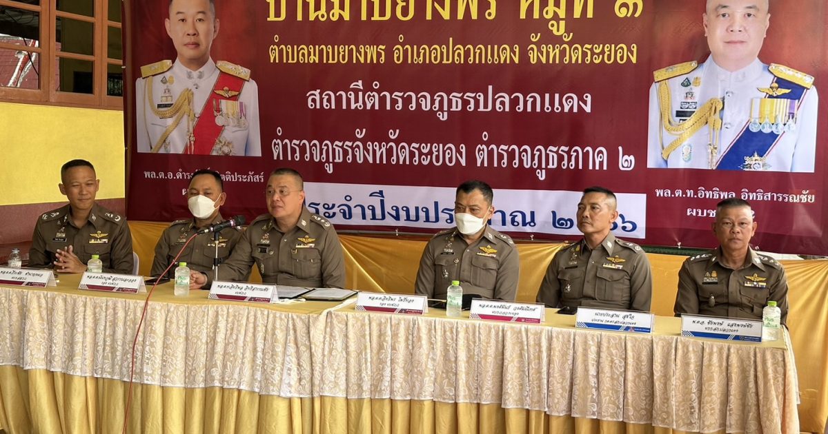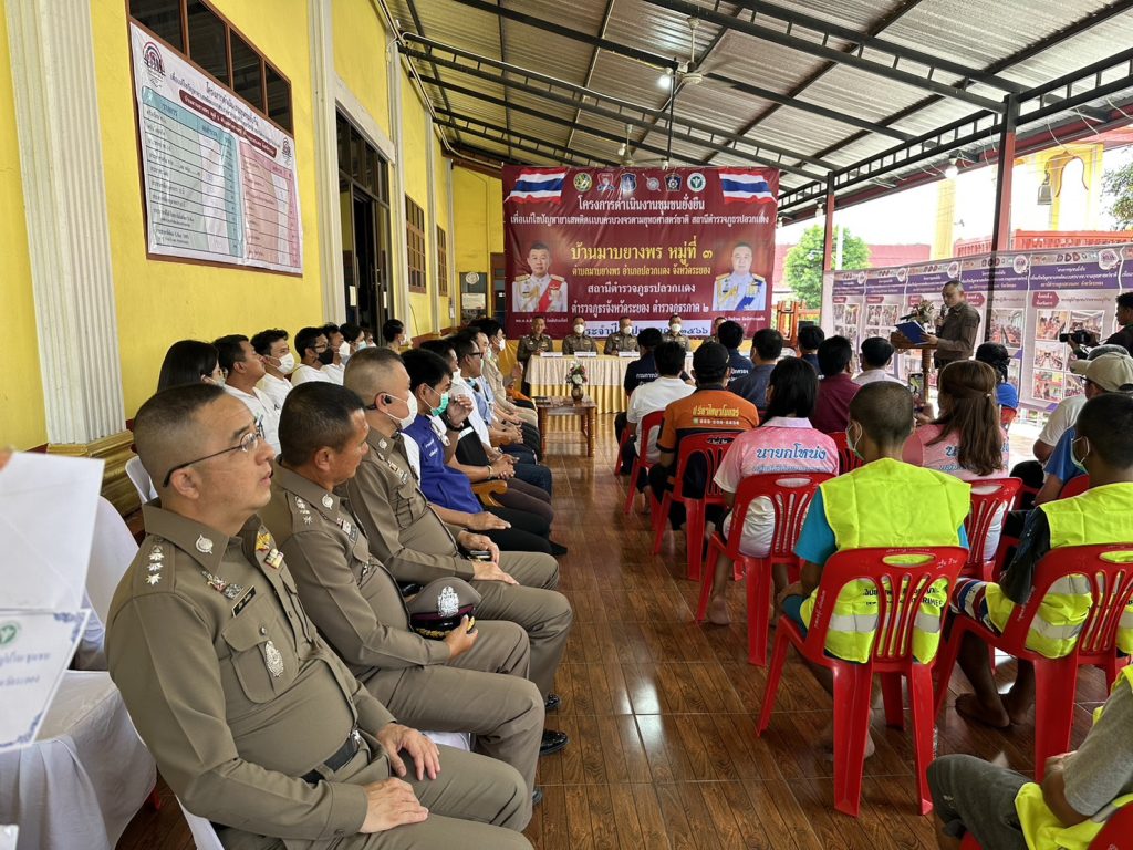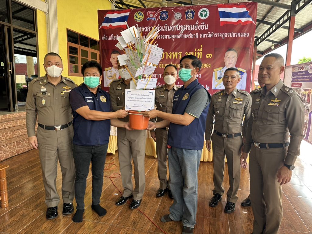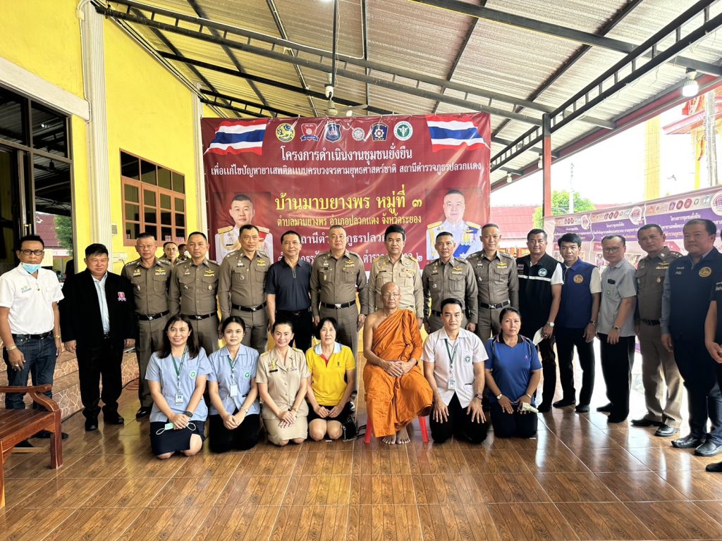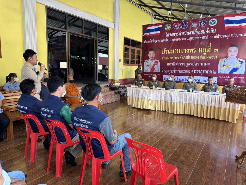 วันนี้ (26 มิ.ย. 66) เวลาประมาณ 14.30 น. พล.ต.ท.อิทธิพล อิทธิสารรณชัย ผบช.ภ.2 พร้อมด้วย พล.ต.ต.อิทธิพร โพธิ์ทอง รอง ผบช.ภ.2, พล.ต.ต.นันทวุฒิ สุวรรณละออง รอง ผบช.ภ.2 พล.ต.ต.พงศ์พันธ์ วงษ์มณีเทศ ผบก.ภ.จว.ระยอง, พล.ต.ต.ธีระชัย ชำนาญหมอ ผบก.สส.ภ.2 พร้อมคณะตรวจเยี่ยมการดำเนินการตามโครงการดำเนินงานชุมชนยั่งยืนเพื่อแก้ปัญหายาเสพติดแบบครบวงจรตามยุทธศาสตร์ชาติ บ้านมาบยางพร ม.3 ต.มาบยางพร อ.ปลวกแดง จว.ระยอง โดยได้ให้คำแนะนำแนวทางการดำเนินการตามโครงการชุมชนยั่งยืน พร้อมทั้งมอบป้ายชุมชนสีขาว และผ้าป่าเบาะแสยาเสพติด เพื่อให้ชุมชนแจ้งข่าวเบาะแสยาเสพติด นำไปสู่การขั้นการส่งต่อความยั่งยืนให้ชุมชนต่อไป โดยมี นายมานนท์ ตาทอง ปลัดอำเภอปลวกแดง, นายอภิชาติ เงินท้วม นายก อบต.มาบยางพร, สาธารณสุข, ผู้นำคุ้มต่าง ๆ 6 คุ้ม และภาคีเครือข่ายให้การต้อนรับ บรรยาย และรายงานผลการดำเนินงานโครงการชุมชนยั่งยืนฯ ณ ศูนย์ปฏิบัติการชุมชนศาลาอเนกประสงค์ วัดราษฎร์อัสดาราม (วัดสะพานสี่) ม.3 ต.มาบยางพร อ.ปลวกแดง จว.ระยอง