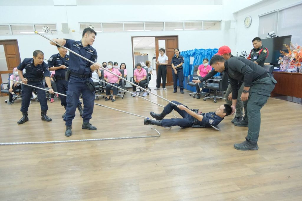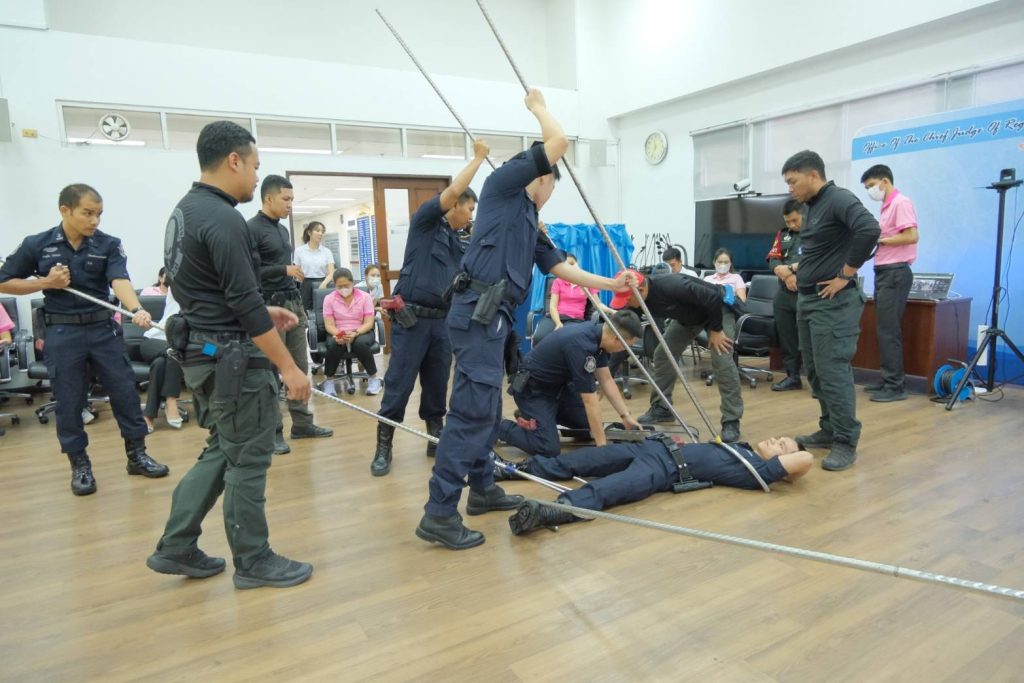 วันนี้ 19 ธ.ค.66 เวลา 09.00-12.00 น. พ.ต.ท.สุริยะ โพธิ์ทองนาค รอง ผกก.ปพ.บก.สส.ภ.2 นำครูฝึกชุดบูรพา 491 รวม 8 นาย เป็นวิทยากรแก่ จนท. และตำรวจศาลในกลุ่มอธิบดีศาลภาค 2 ในหัวข้อเกี่ยวกับการเผชิญเหตุที่เกิดกับศาลโดยเฉพาะบุคคลคลุ้มคลั่ง การเอาตัวรอดจากสถานการณ์ Active shooter ผู้เข้ารับการอบรมจำนวน 30 นาย โดยแบ่งเป็นเจ้าหน้าที่ตำรวจศาล 10 นาย จนท.สำนักงานศาล 20 นายภาพรวมเป็นการบรรยายทฤษฎี 1.15 ชม. ทบทวนการเทคนิคการจับกุม เทคดาวน์ การใช้อุปกรณ์ ดิ้ว ไม้ง่าม 1.15 และการฝึกในสถานการณ์จำลอง 30 นาทีผลการฝึกอบรมเป็นไปด้วยความเรียบร้อย ได้รับความสนใจ และการนำเสนอการเผชิญเหตุระดับผู้ปฏิบัติแลกเปลี่ยนประสบการณ์ การขอให้เป็นวิทยากรการฝึกครั้งต่อไปและขอส่งเจ้าหน้าที่มาฝึกที่ ศูนย์ฝึกอบรม กก.ปพ.บก.สส.ภ.2 ในช่วงเดือน มี.ค.66 ต่อไป