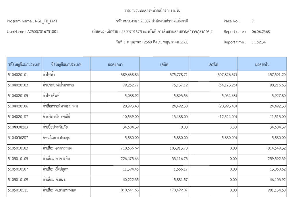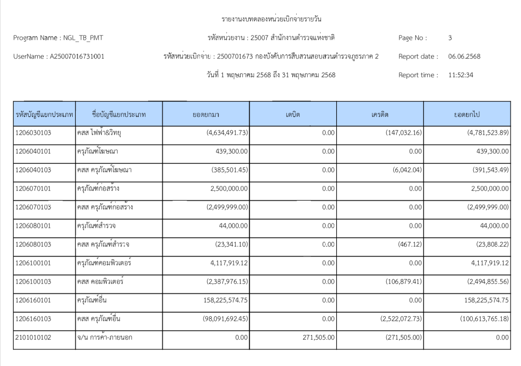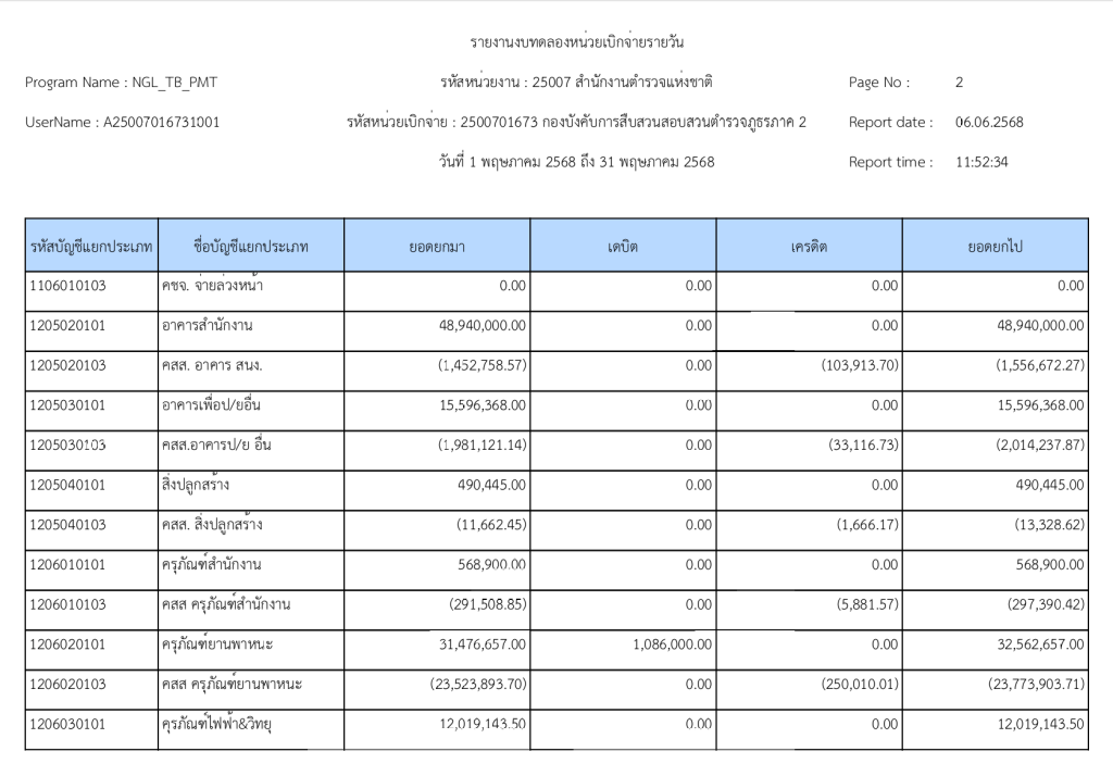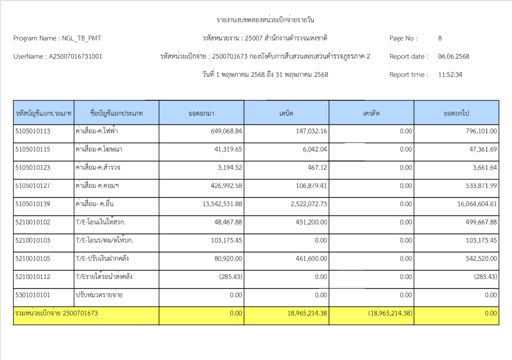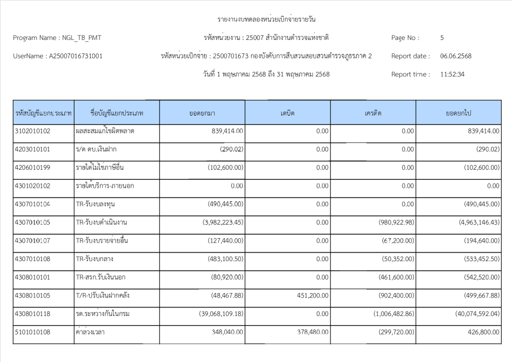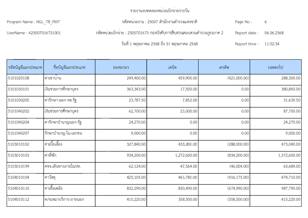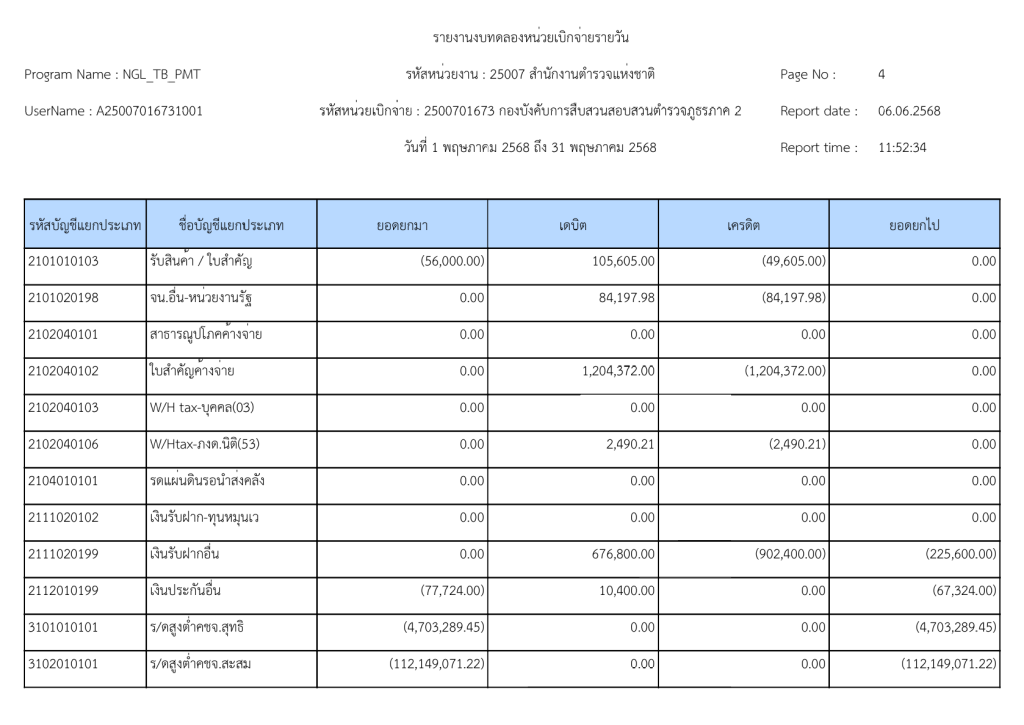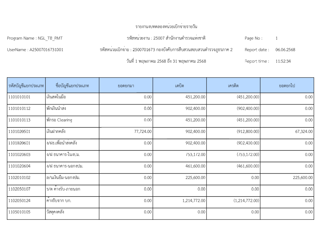 พฤษภาคมรายงานงบทดลองหน่วยเบิกจ่ายรายวัน ประจำเดือน พฤษภาคม 2568 6 มิถุนายน 2025 โดย invp265 / ข่าวจัดซื้อจัดจ้าง,ข่าวจัดซื้อจัดจ้าง,งานการเงินและพัสดุ