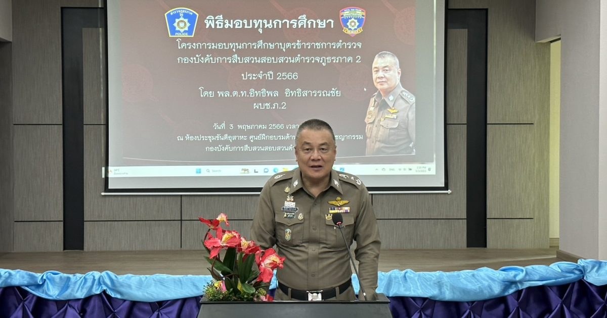 ผบช.ภ.2 เป็นประธานในพิธีมอบทุนการศึกษาโครงการผ้าป่าสามัคคีทุนการศึกษาบุตรข้าราชการตำรวจ กองบังคับการสืบสวนสอบสวนตำรวจภูธรภาค 2 ประจำปี 2566
