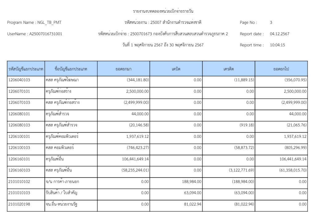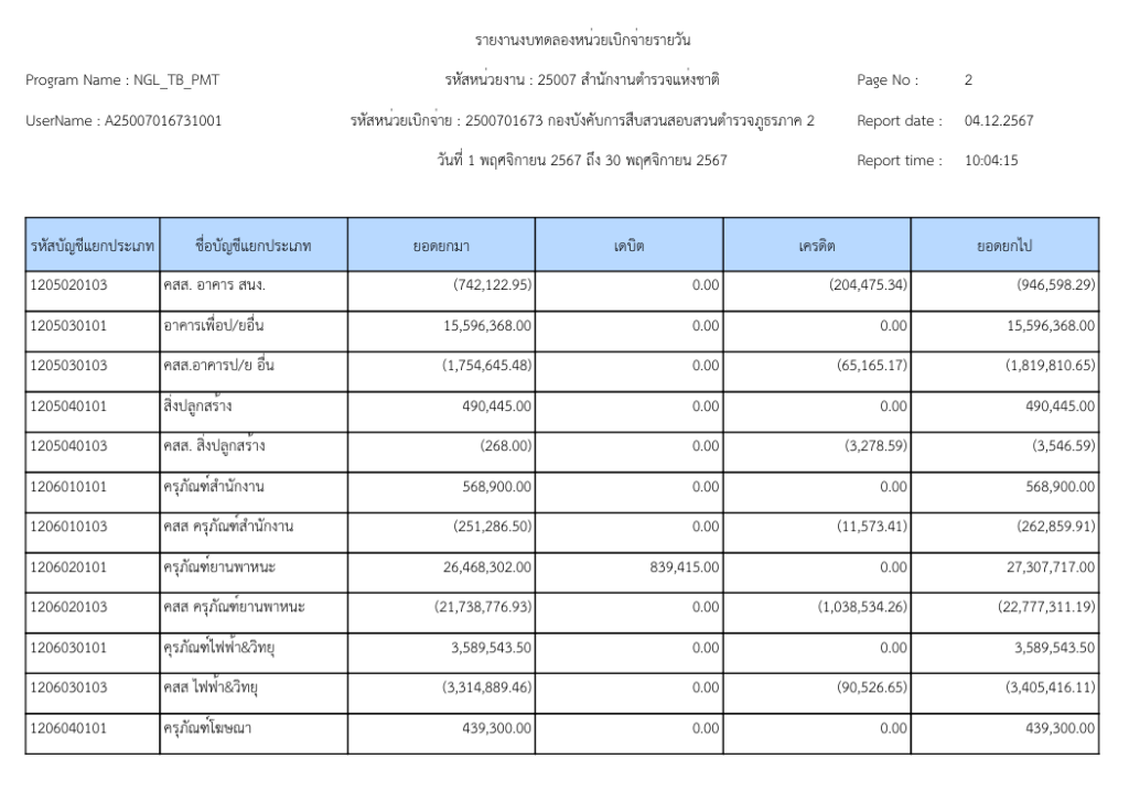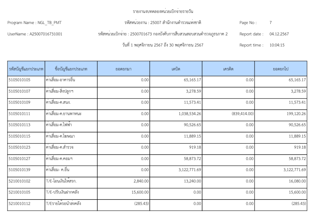 • ใหม่กว่า → รายงานงบทดลองหน่วยเบิกจ่ายรายวัน 1 ธันวาคม ถึง 31 ธันวาคม 2567
