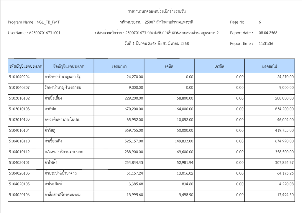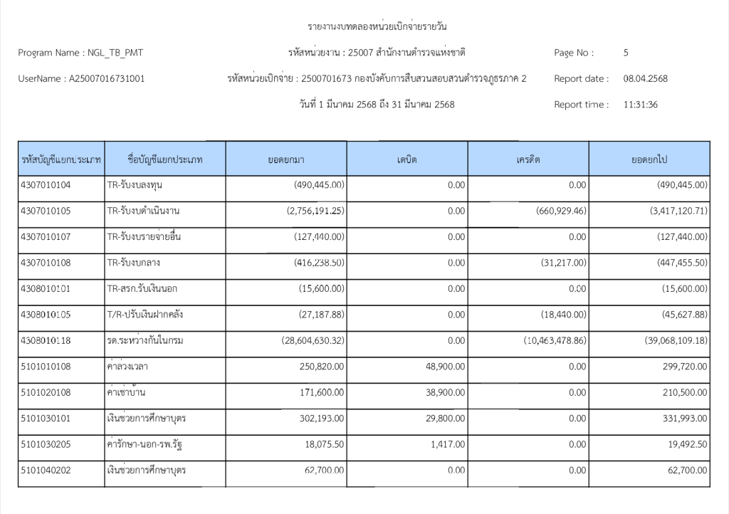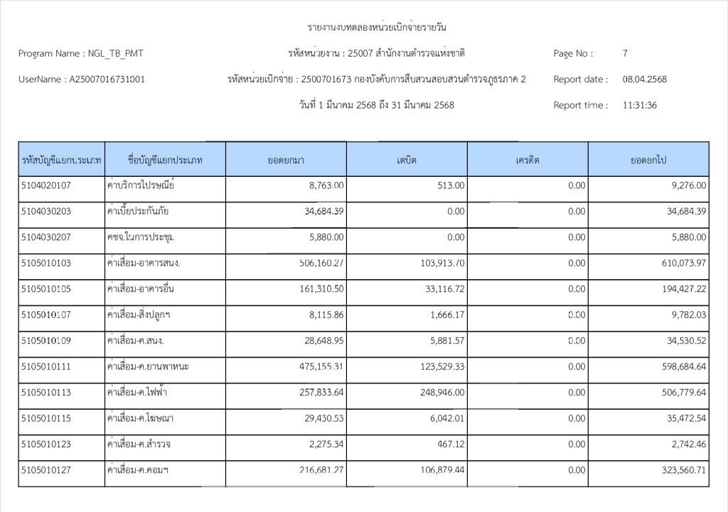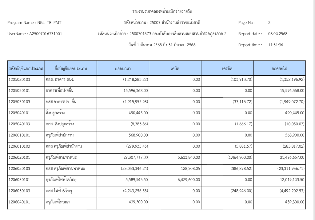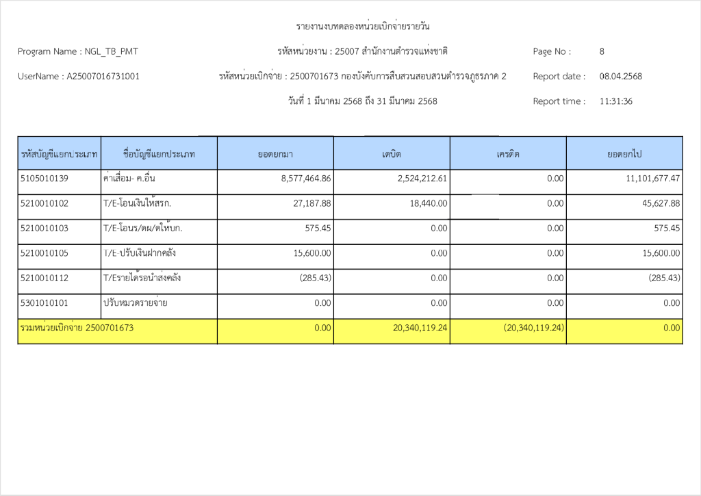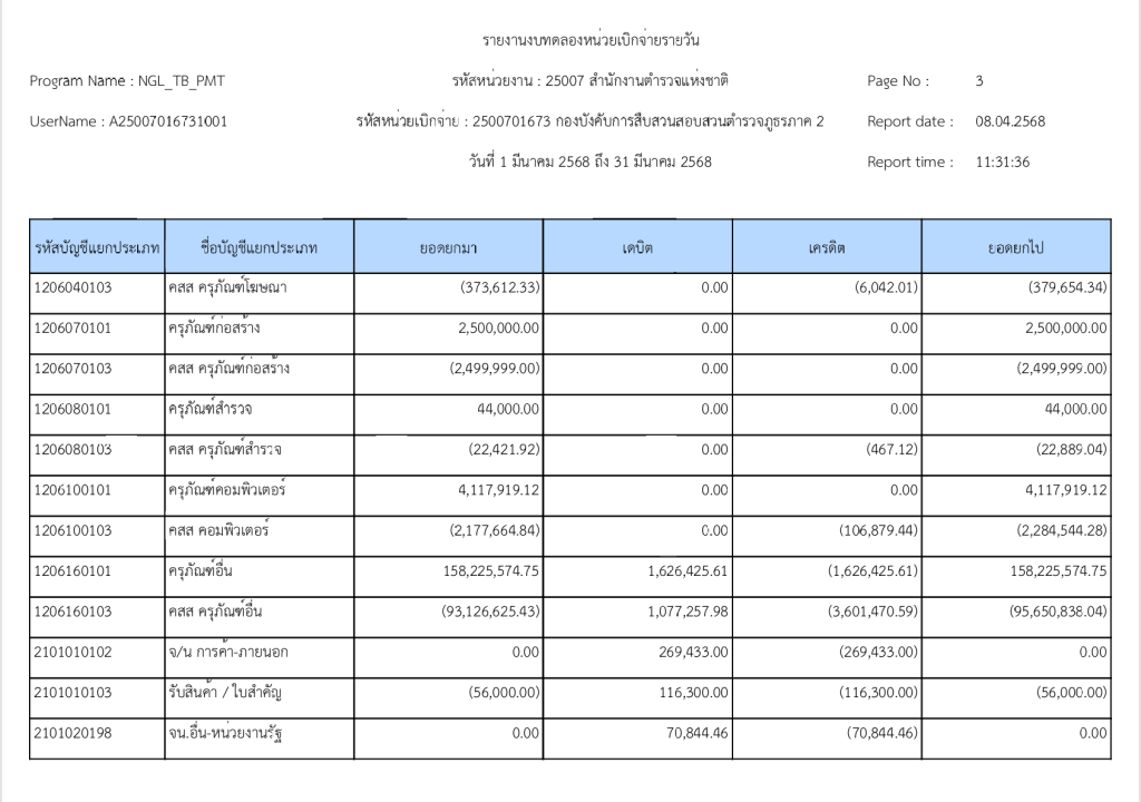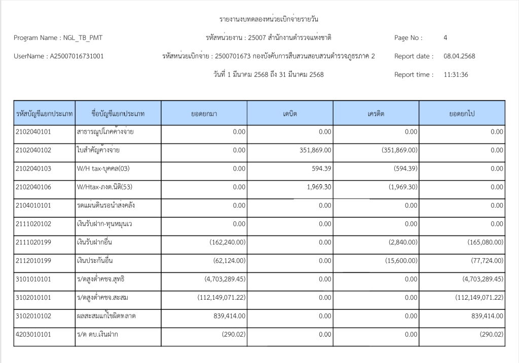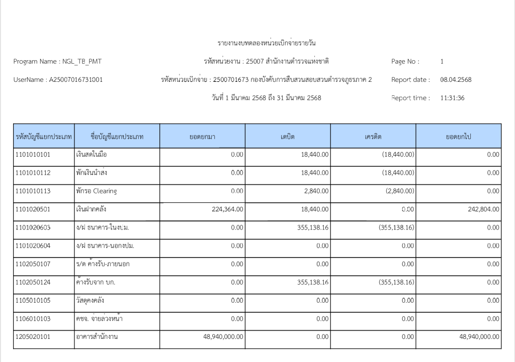 รายงานงบทดลองหน่วยเบิกจ่ายรายวัน ประจำเดือน มีนาคม 2568 8 เมษายน 2025 โดย invp265 / ข่าวจัดซื้อจัดจ้าง,งานการเงินและพัสดุ