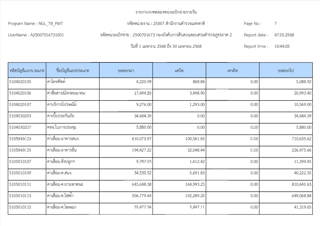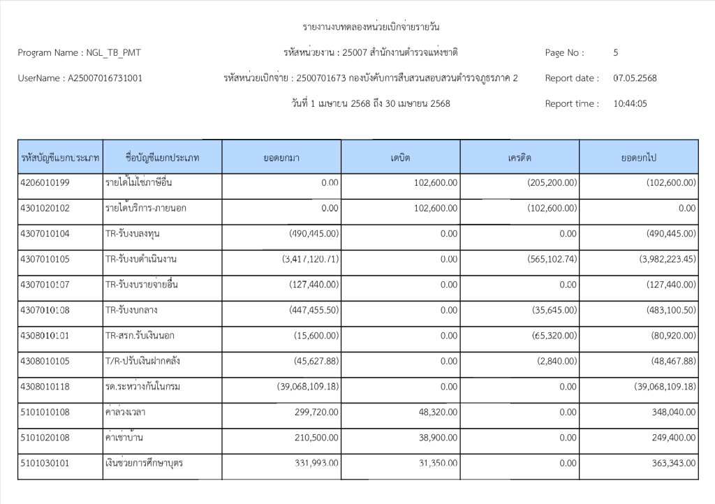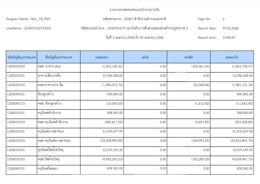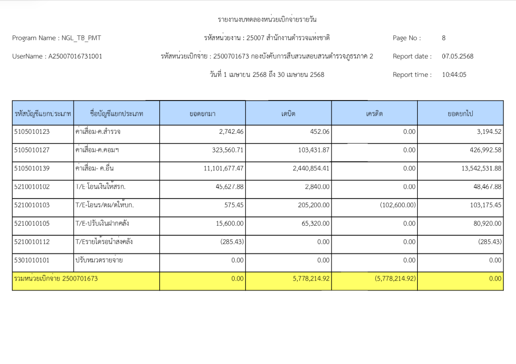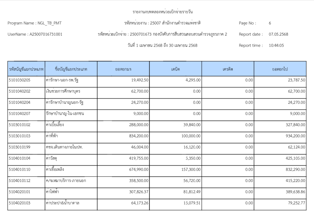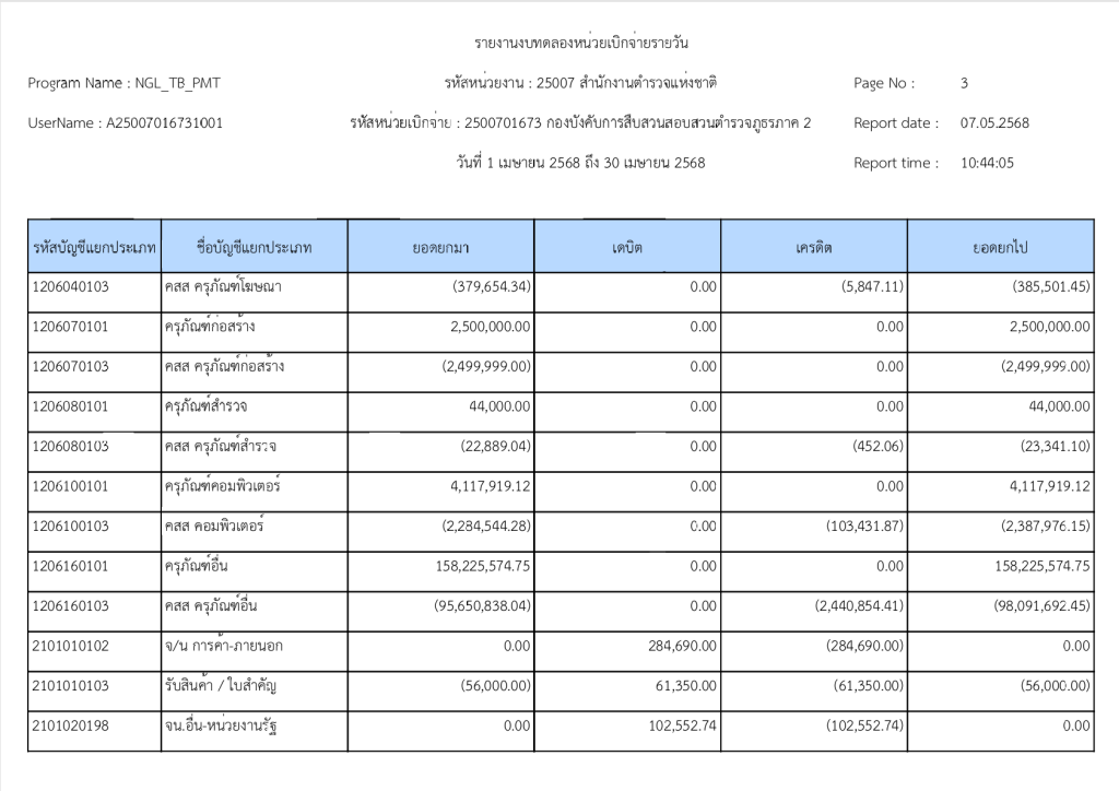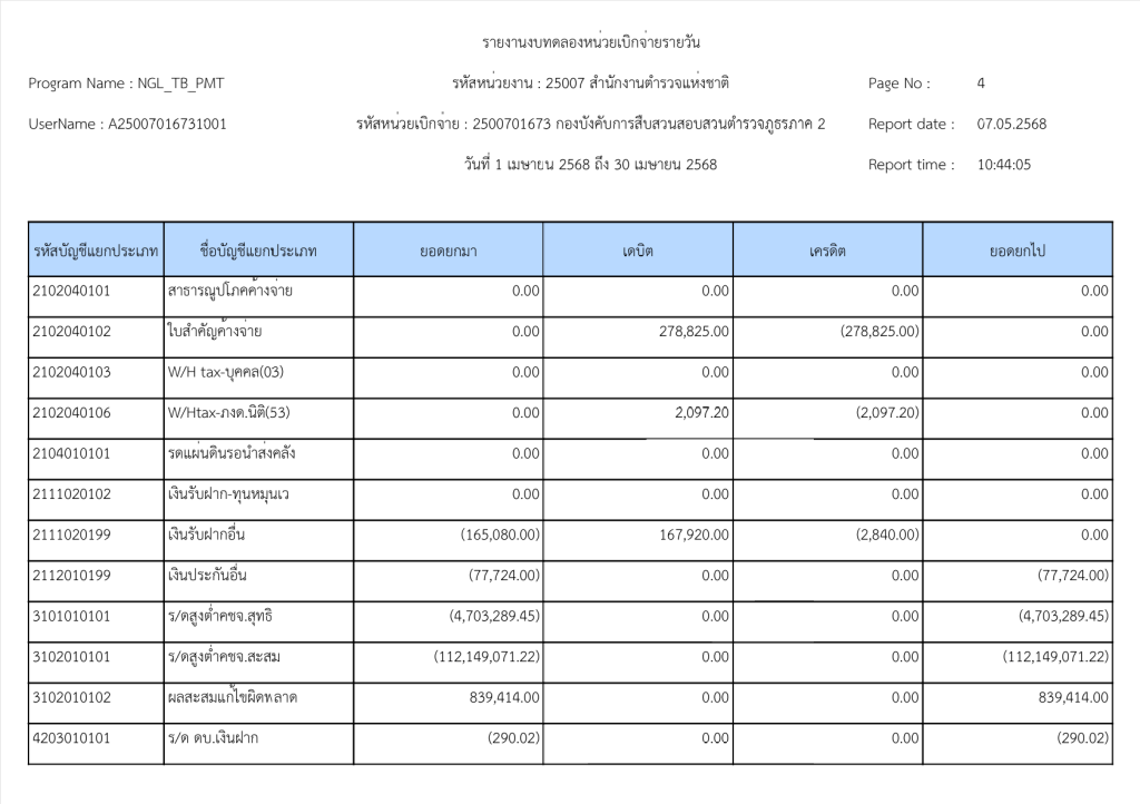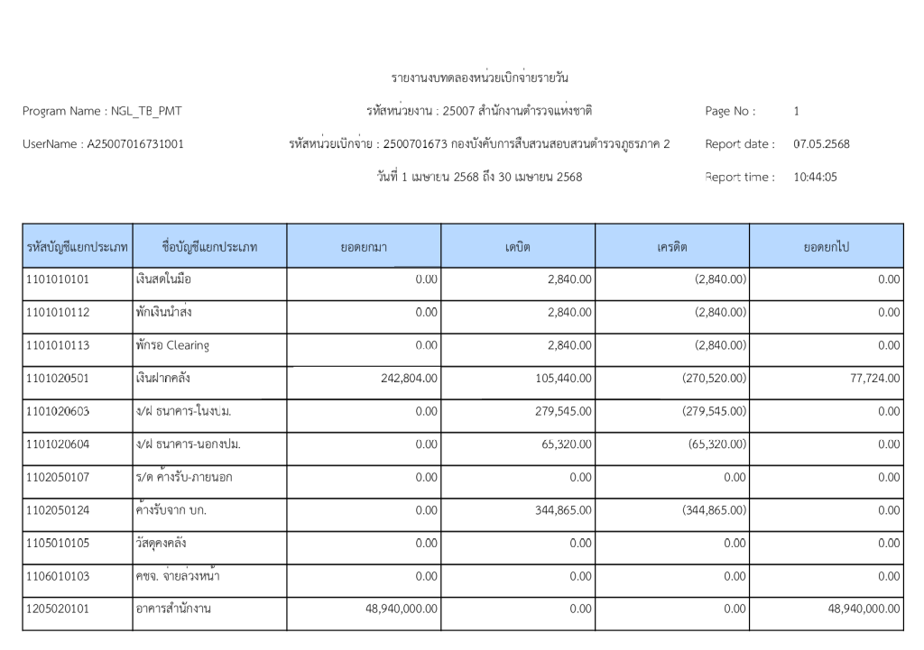 รายงานงบทดลองหน่วยเบิกจ่ายรายวัน ประจำเดือน เมษายน 2568 13 พฤษภาคม 2025 โดย invp265 / ข่าวจัดซื้อจัดจ้าง,ข่าวจัดซื้อจัดจ้าง,งานการเงินและพัสดุ,ไม่มีหมวดหมู่