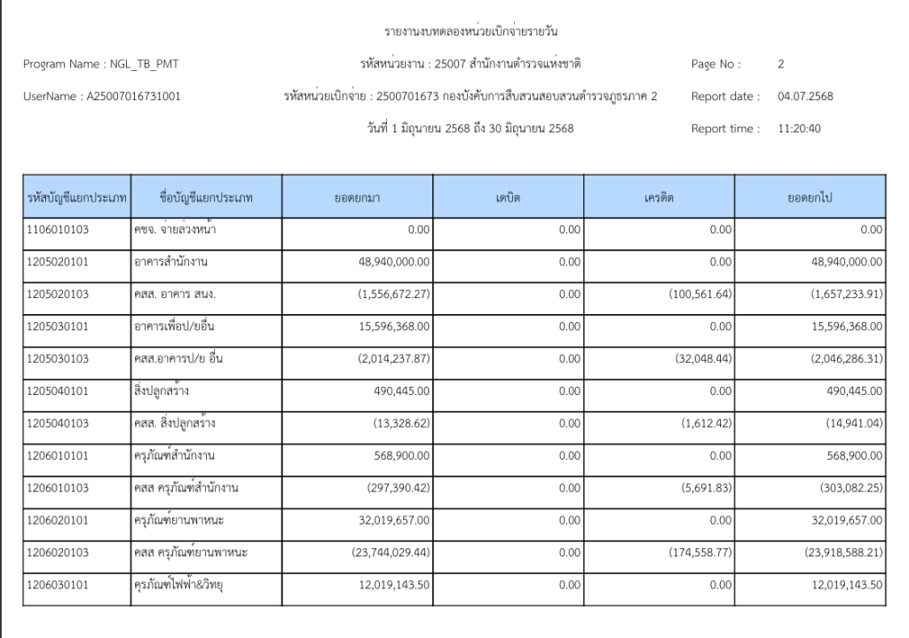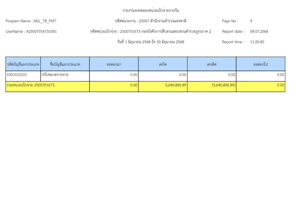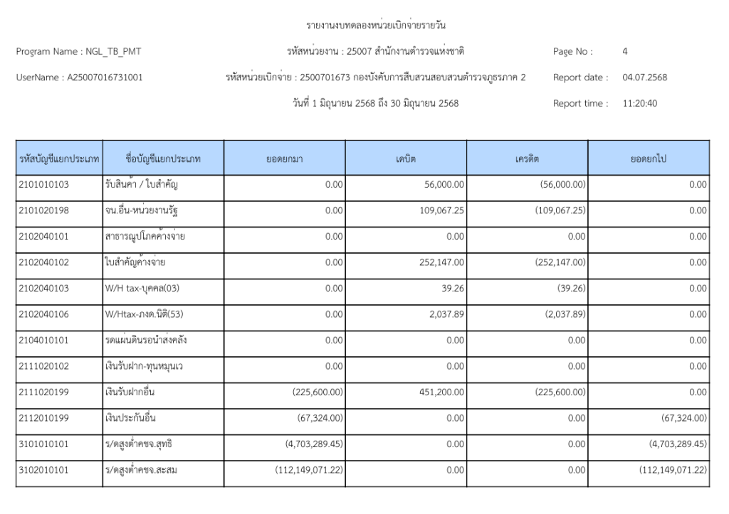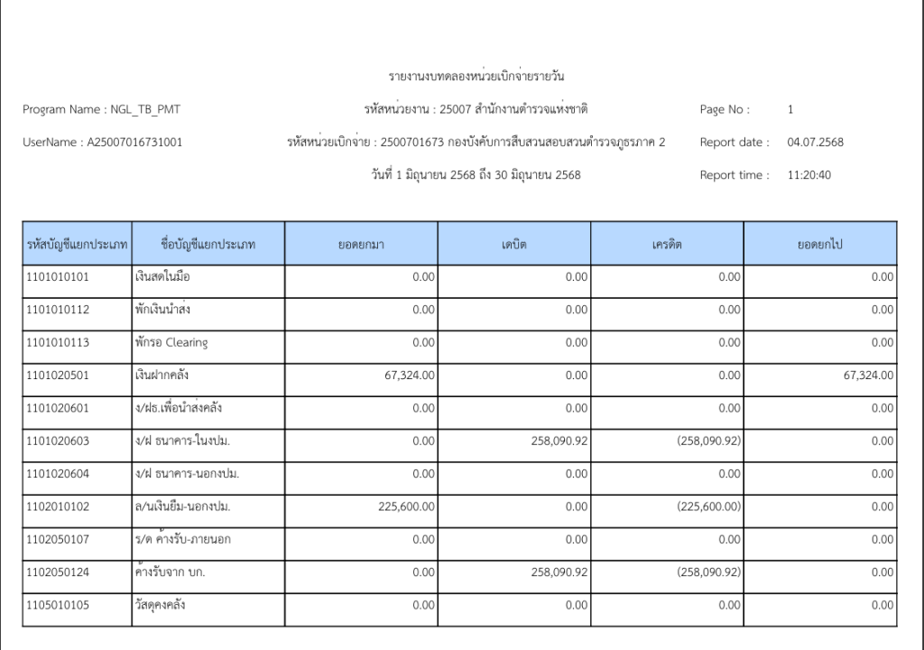 รายงานงบทดลองหน่วยเบิกจ่ายรายวัน ประจำเดือนมิถุนายน 2568 20 กรกฎาคม 2025 โดย invp265 / ข่าวจัดซื้อจัดจ้าง,ข่าวจัดซื้อจัดจ้าง,งานการเงินและพัสดุ