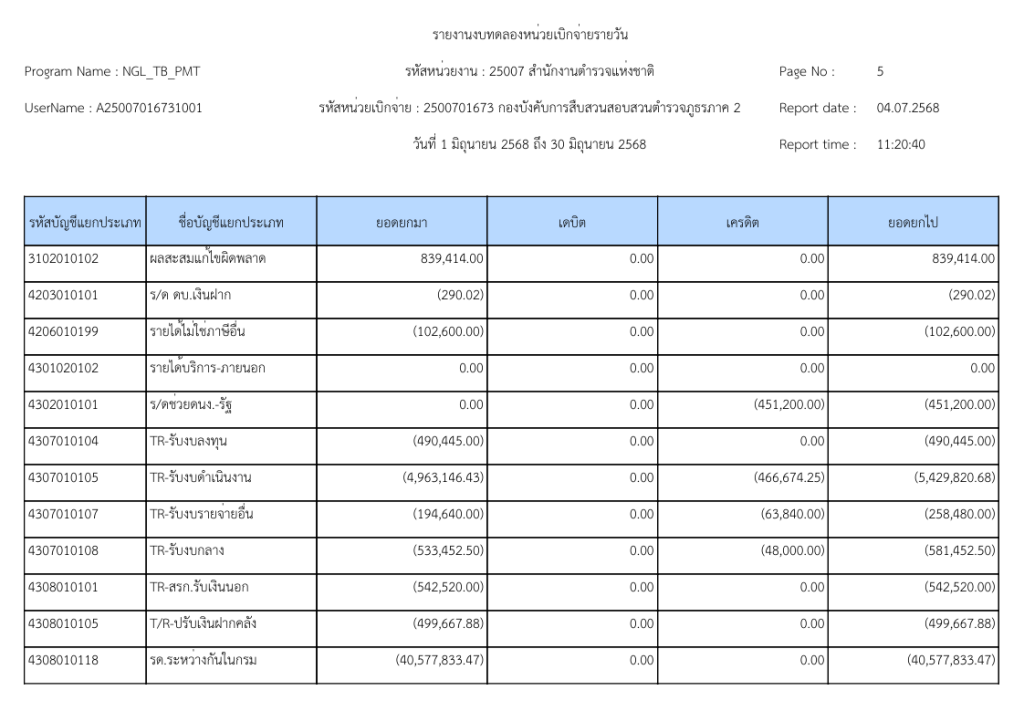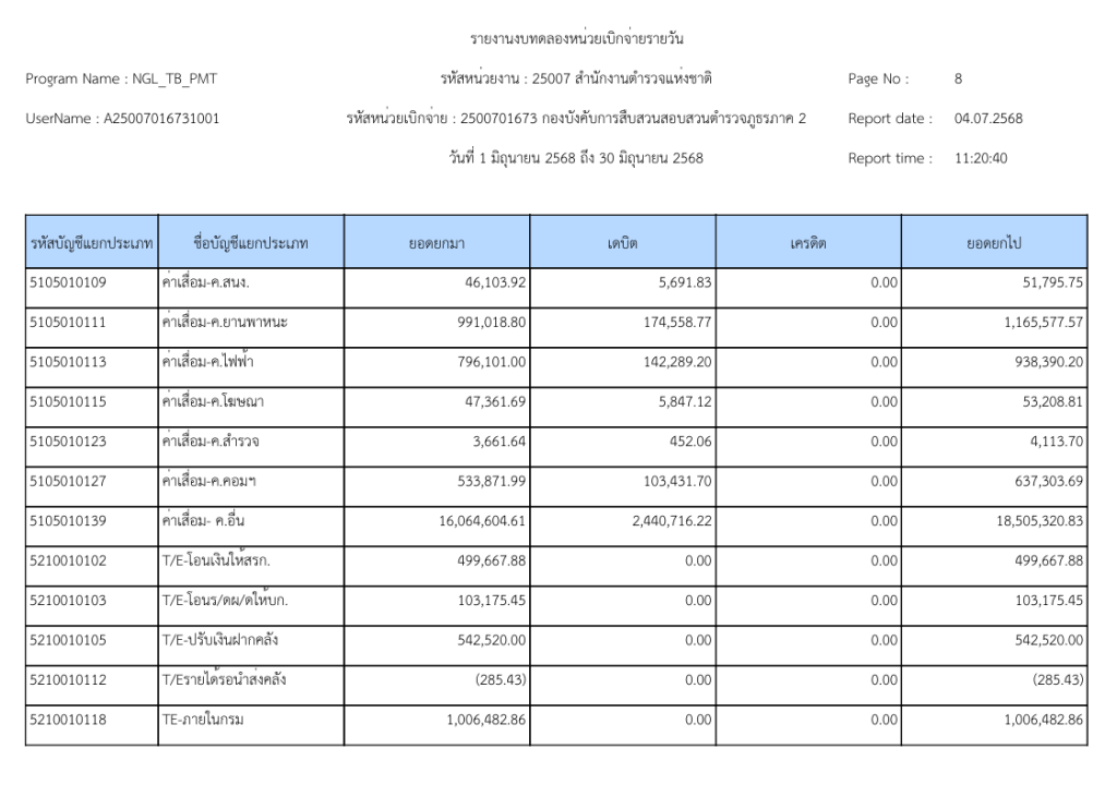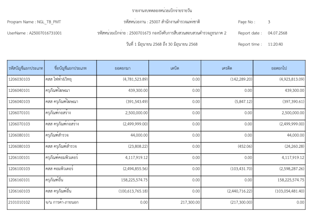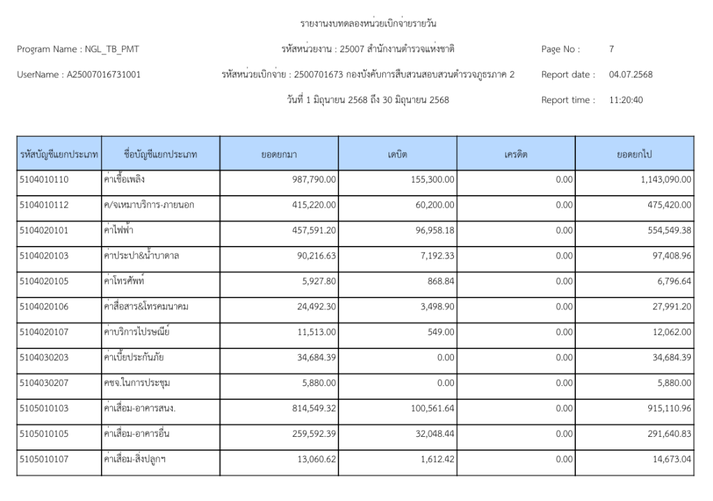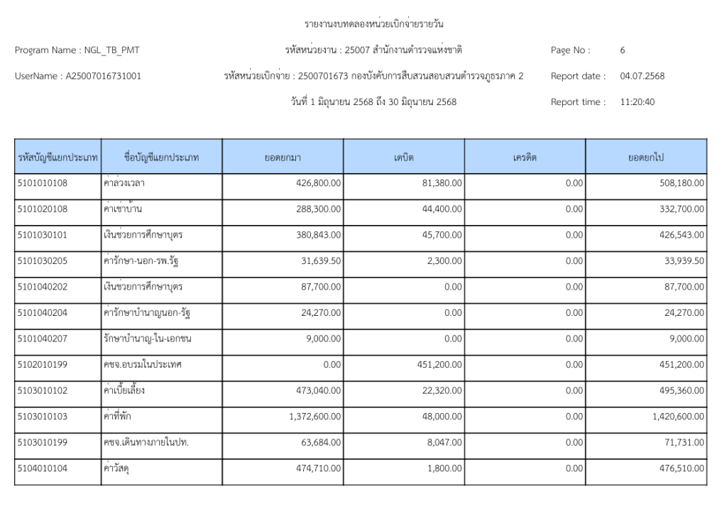 รายงานงบทดลองหน่วยเบิกจ่ายรายวัน ประจำเดือนมิถุนายน 2568 20 กรกฎาคม 2025 โดย invp265 / ข่าวจัดซื้อจัดจ้าง,ข่าวจัดซื้อจัดจ้าง,งานการเงินและพัสดุ