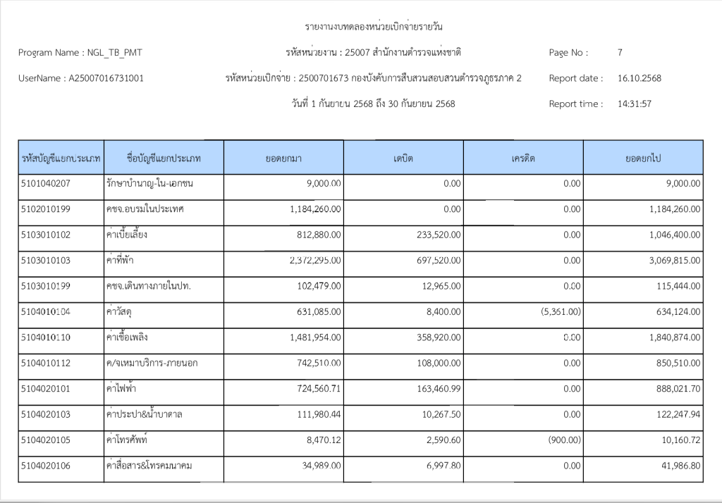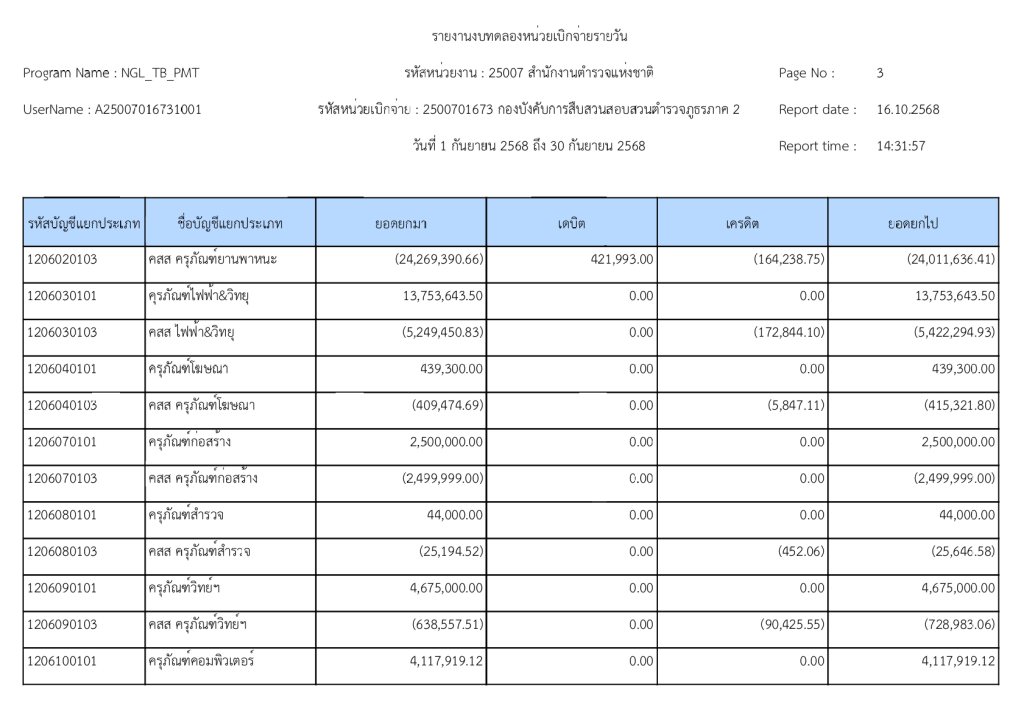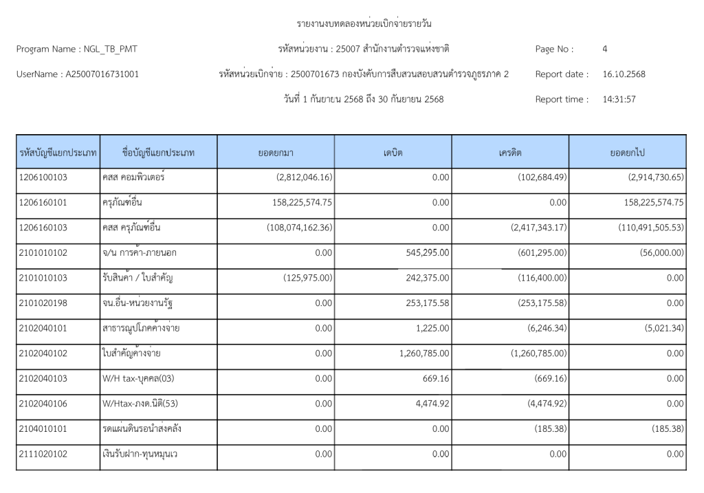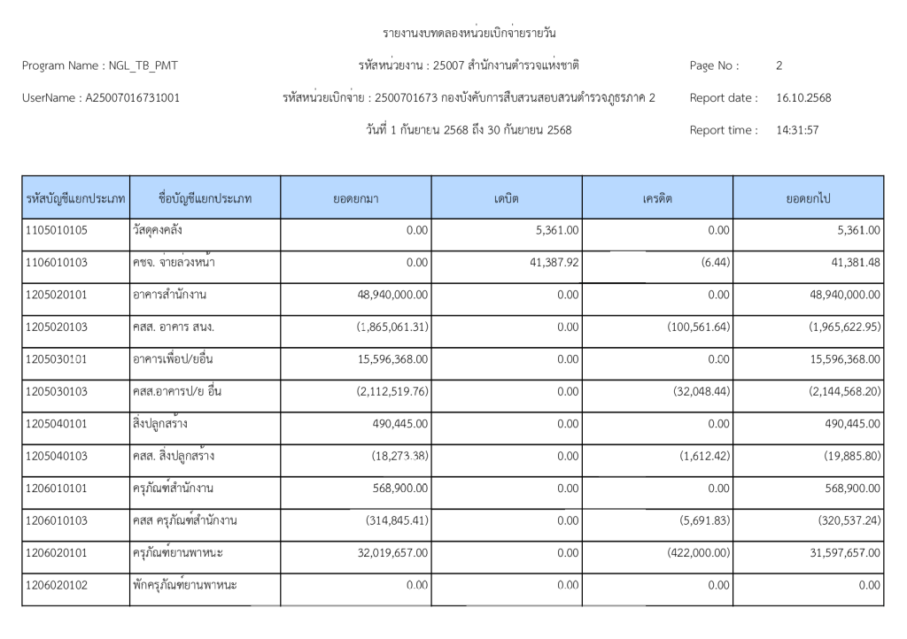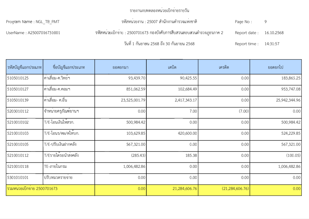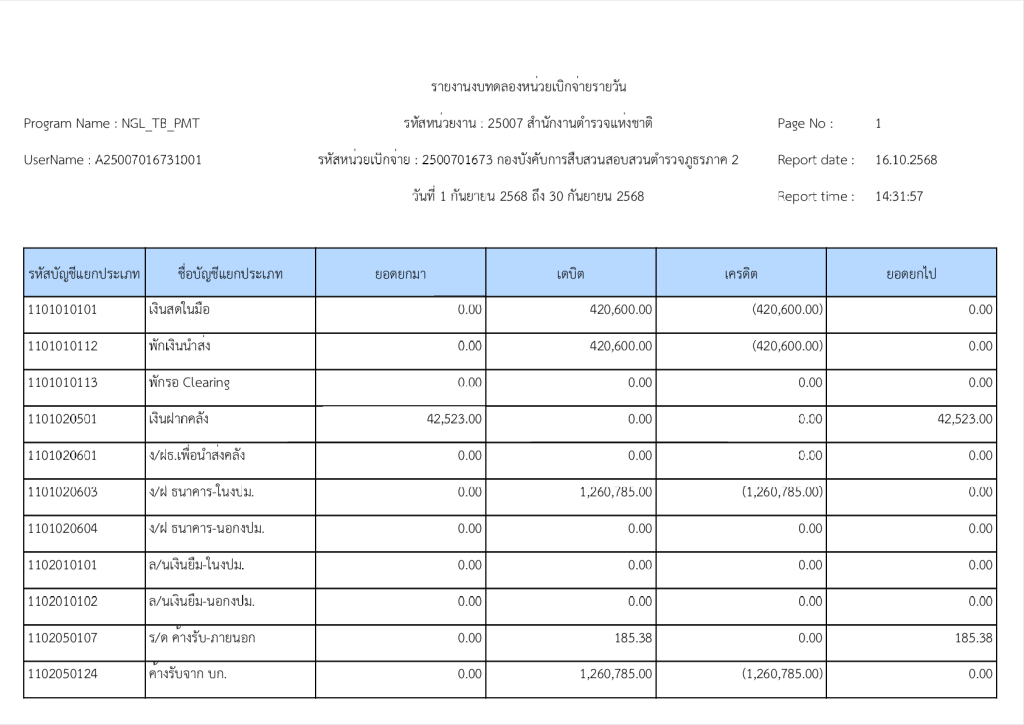 รายงานงบทดลองหน่วยเบิกจ่ายรายวัน ประจำเดือน กันยายน 2568 20 ตุลาคม 2025 โดย invp265 / ข่าวจัดซื้อจัดจ้าง,ข่าวจัดซื้อจัดจ้าง,งานการเงินและพัสดุ