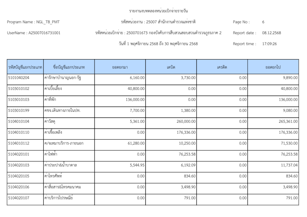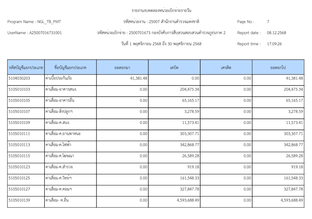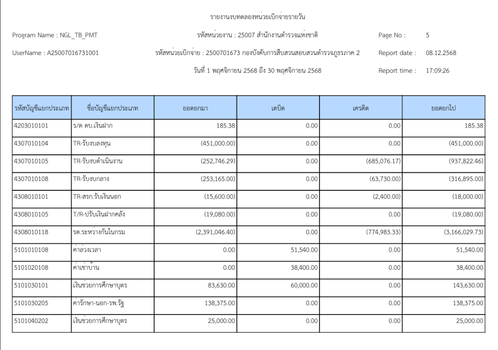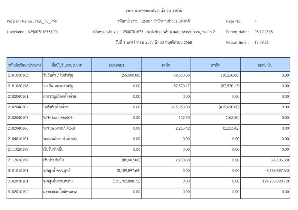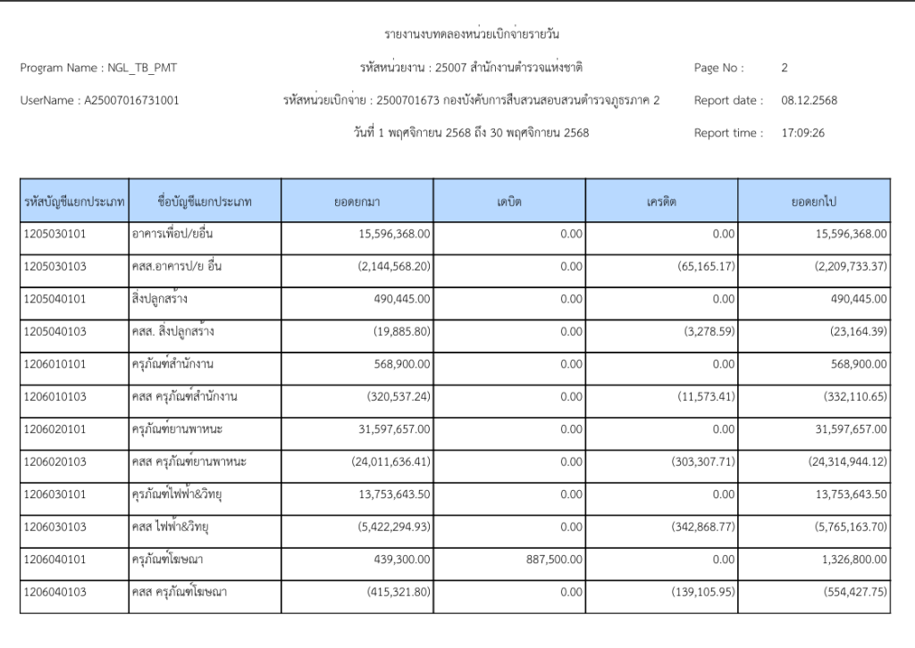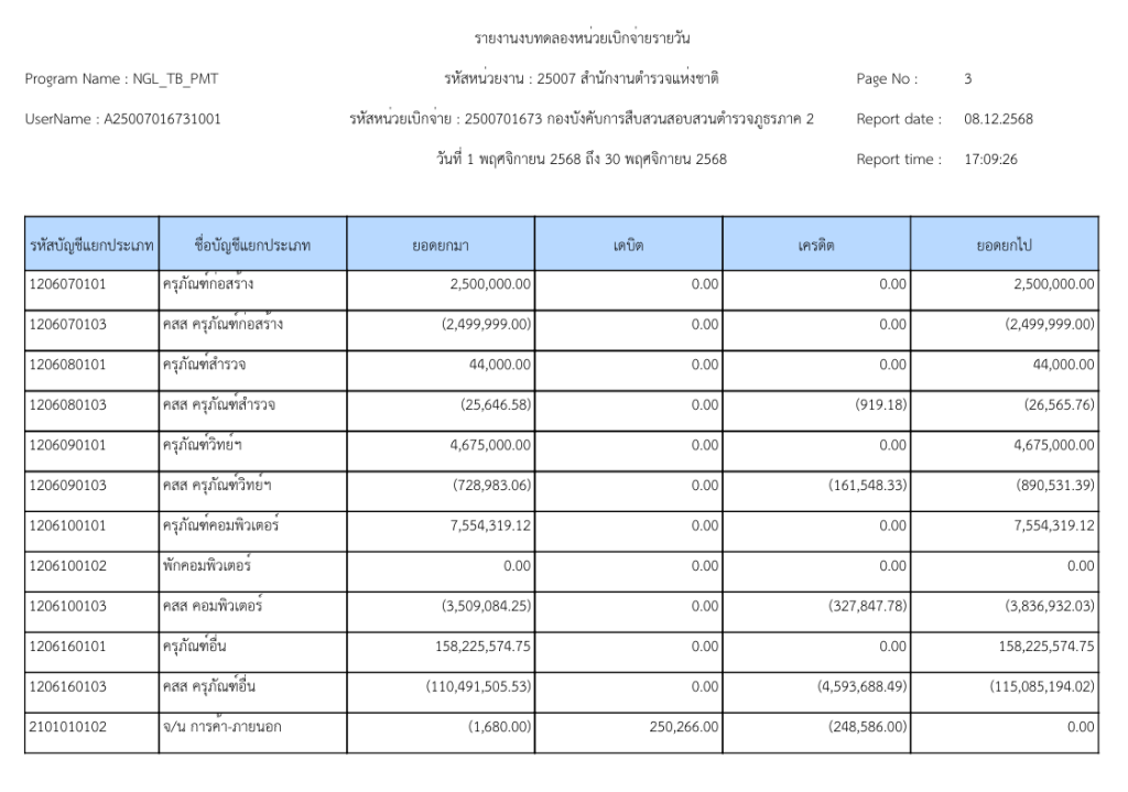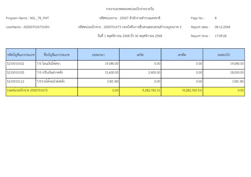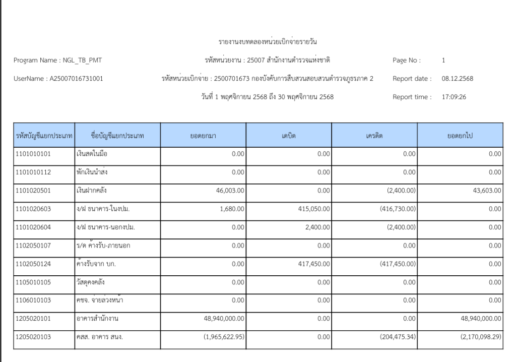 รายงานงบทดลองหน่วยเบิกจ่ายรายวัน ประจำเดือน พฤศจิกายน 2568 9 ธันวาคม 2025 โดย invp265 / ข่าวจัดซื้อจัดจ้าง,ข่าวจัดซื้อจัดจ้าง,งานการเงินและพัสดุ,ไม่มีหมวดหมู่