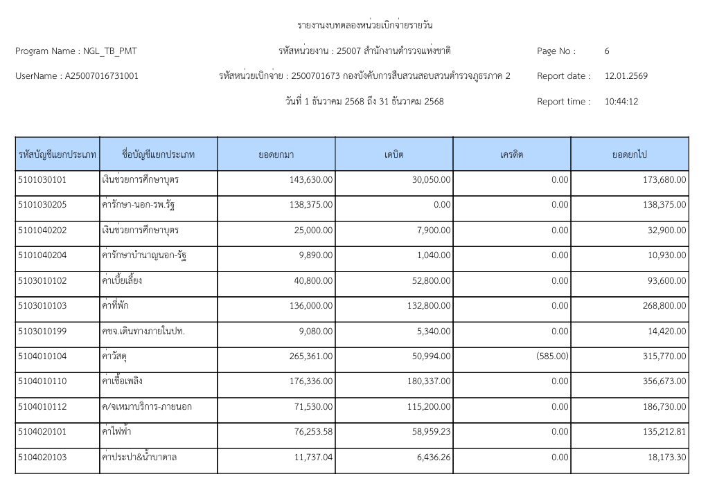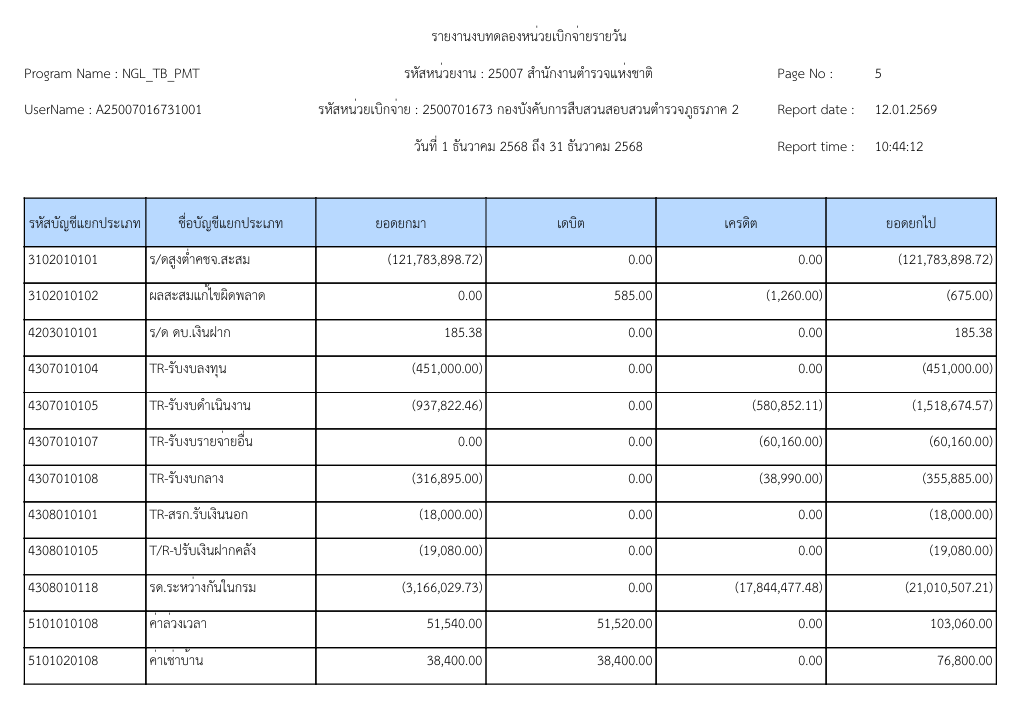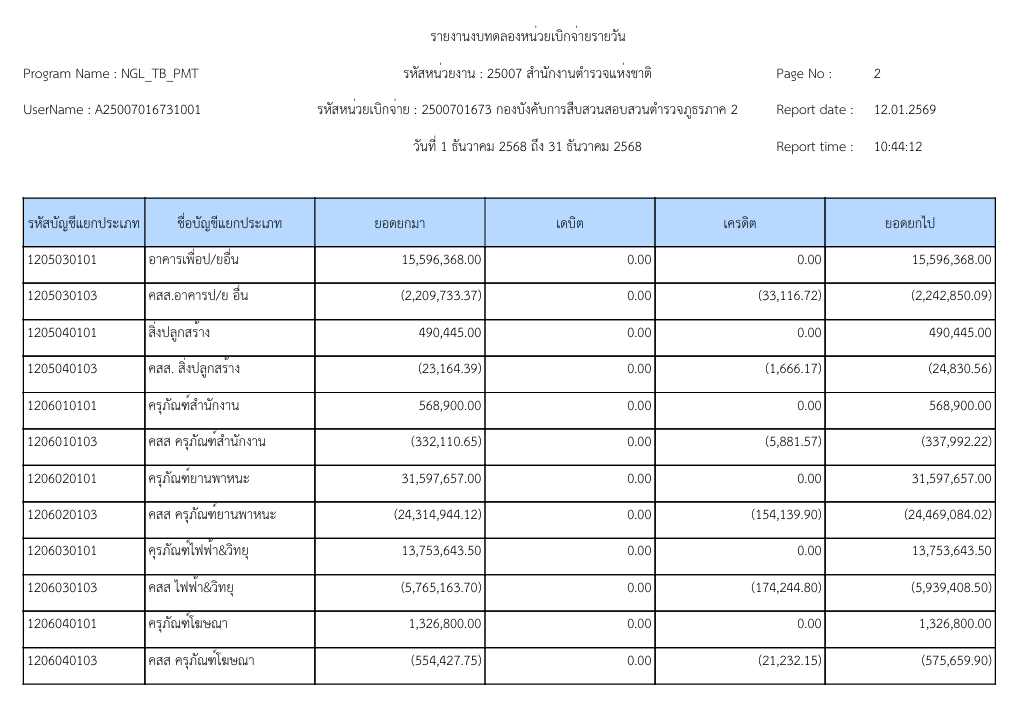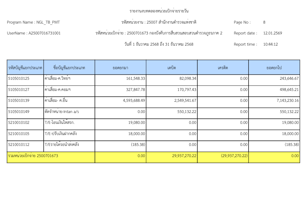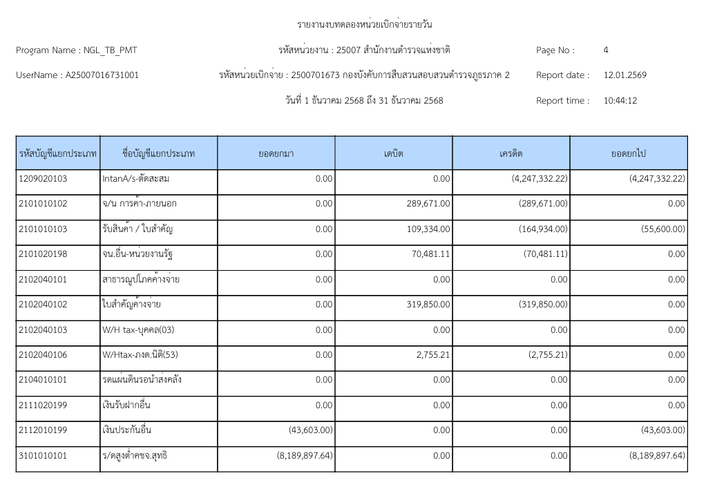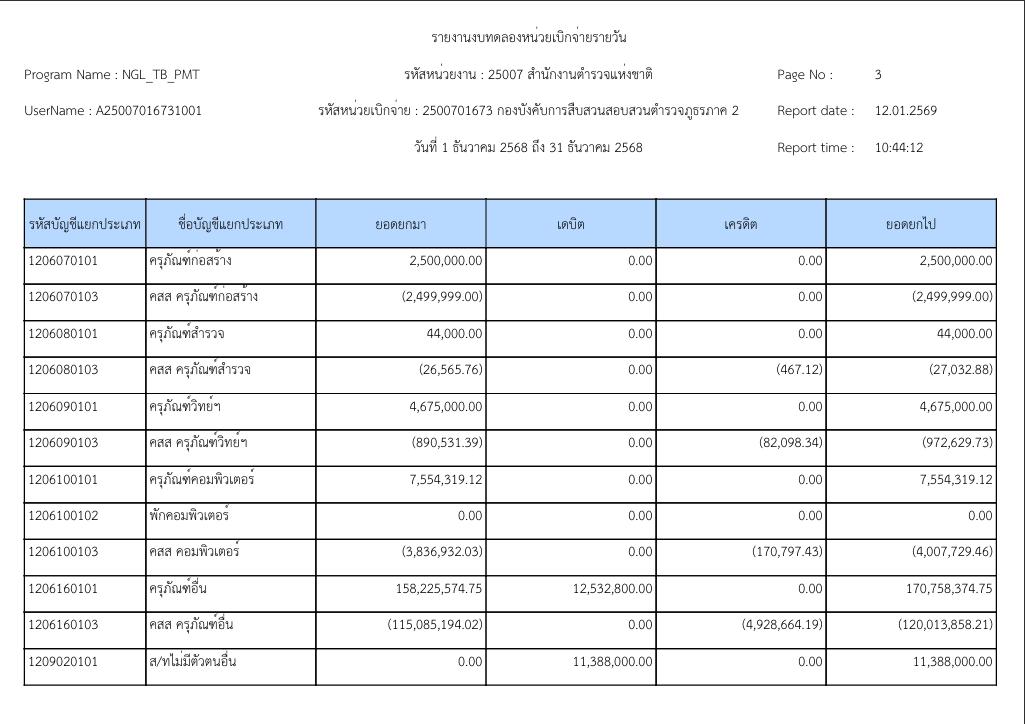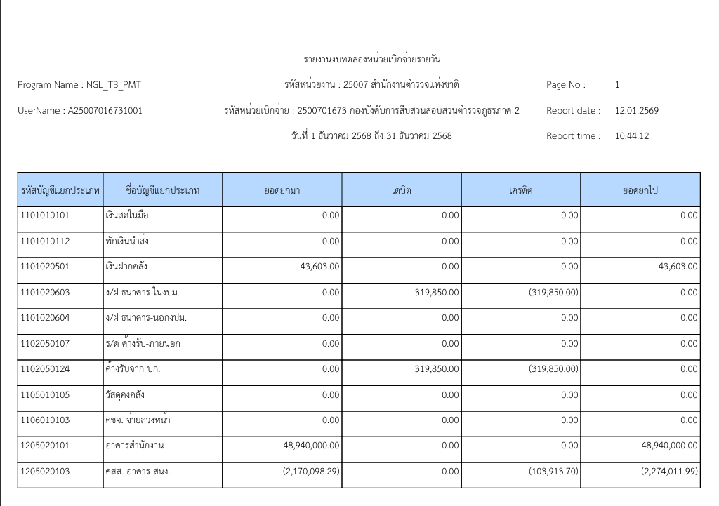 รายงานงบทดลองหน่วยเบิกจ่ายรายวัน ประจำเดือน ธันวาคม 2568 13 มกราคม 2026 โดย invp265 / ข่าวจัดซื้อจัดจ้าง,ข่าวจัดซื้อจัดจ้าง,งานการเงินและพัสดุ,ไม่มีหมวดหมู่