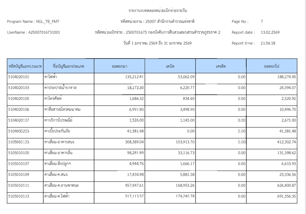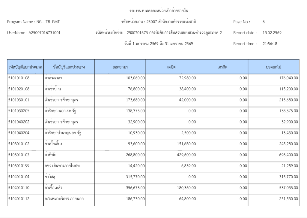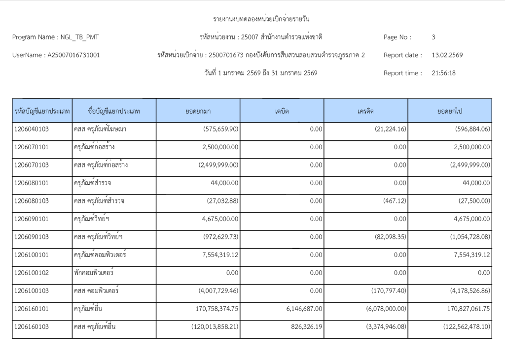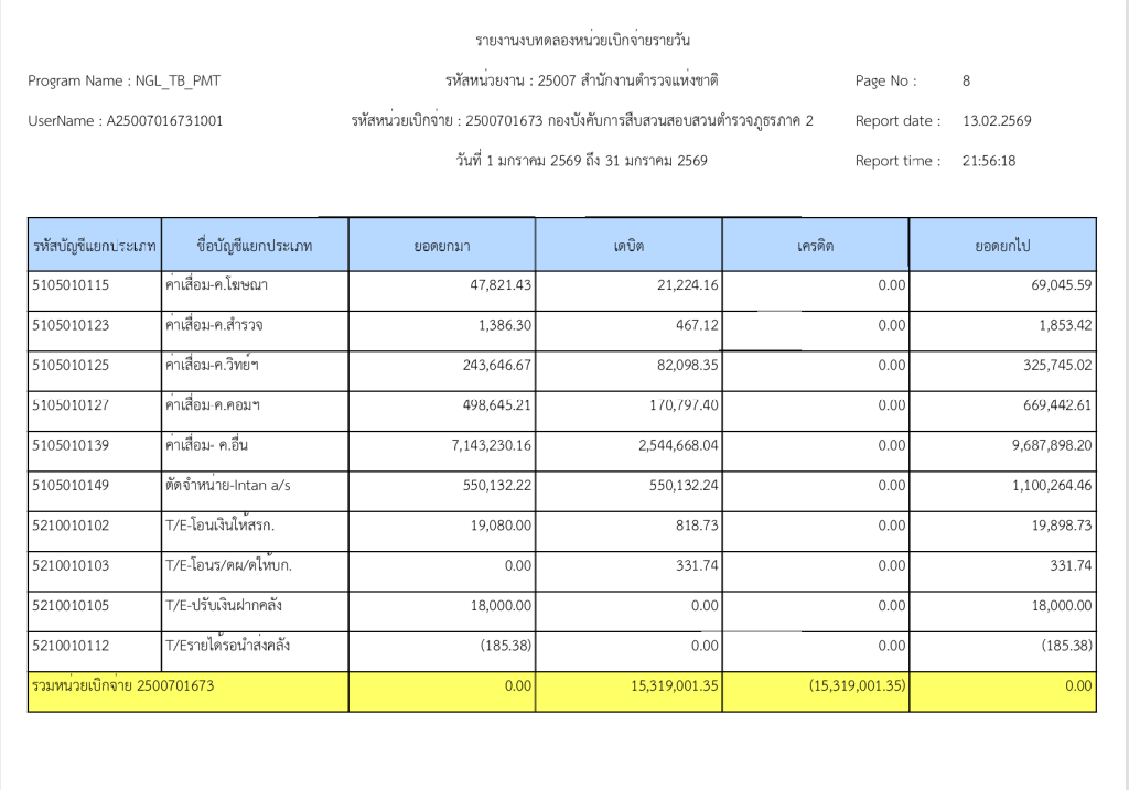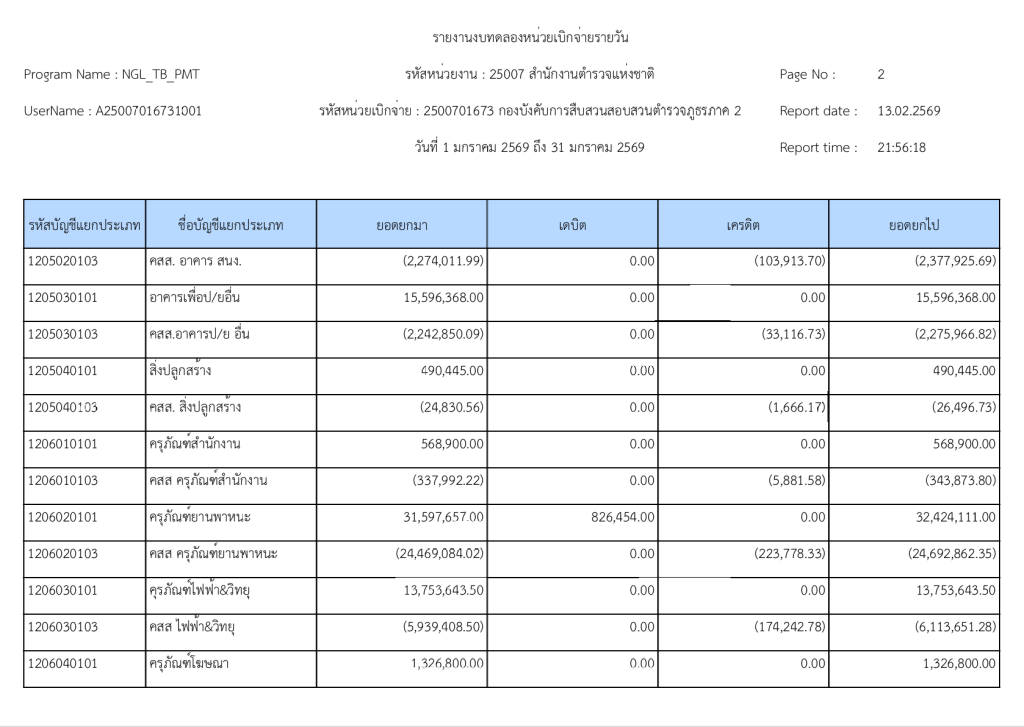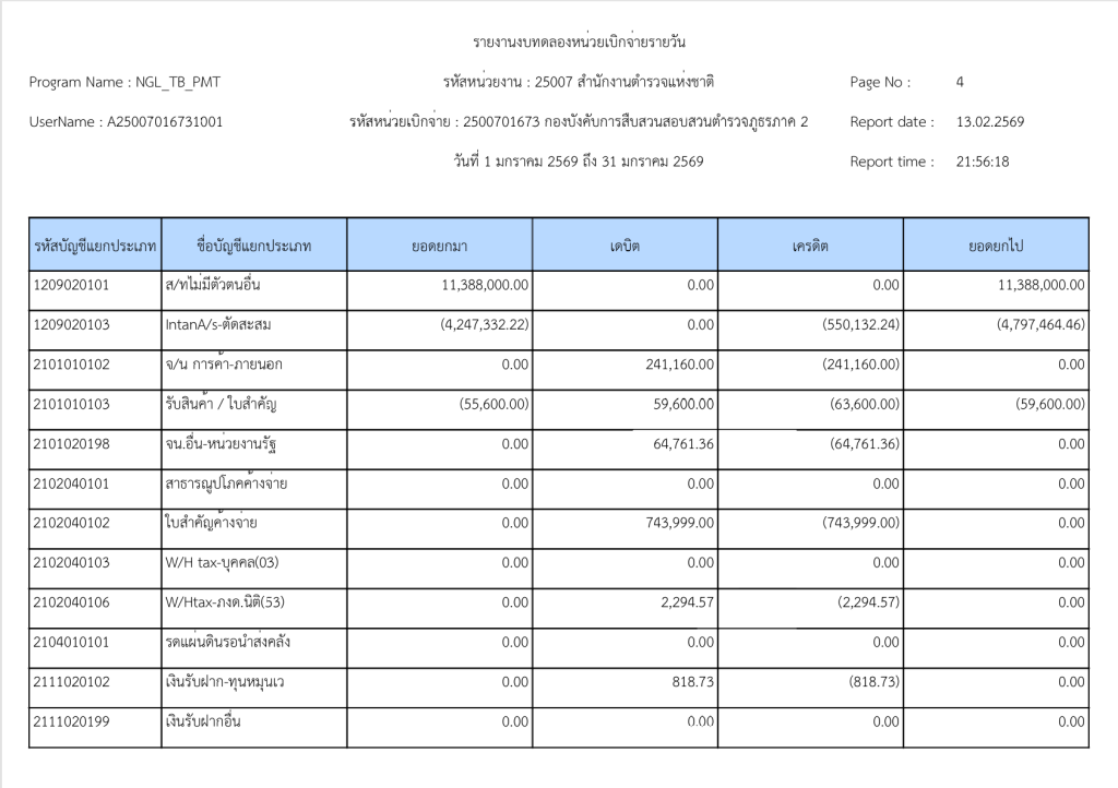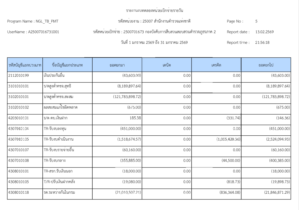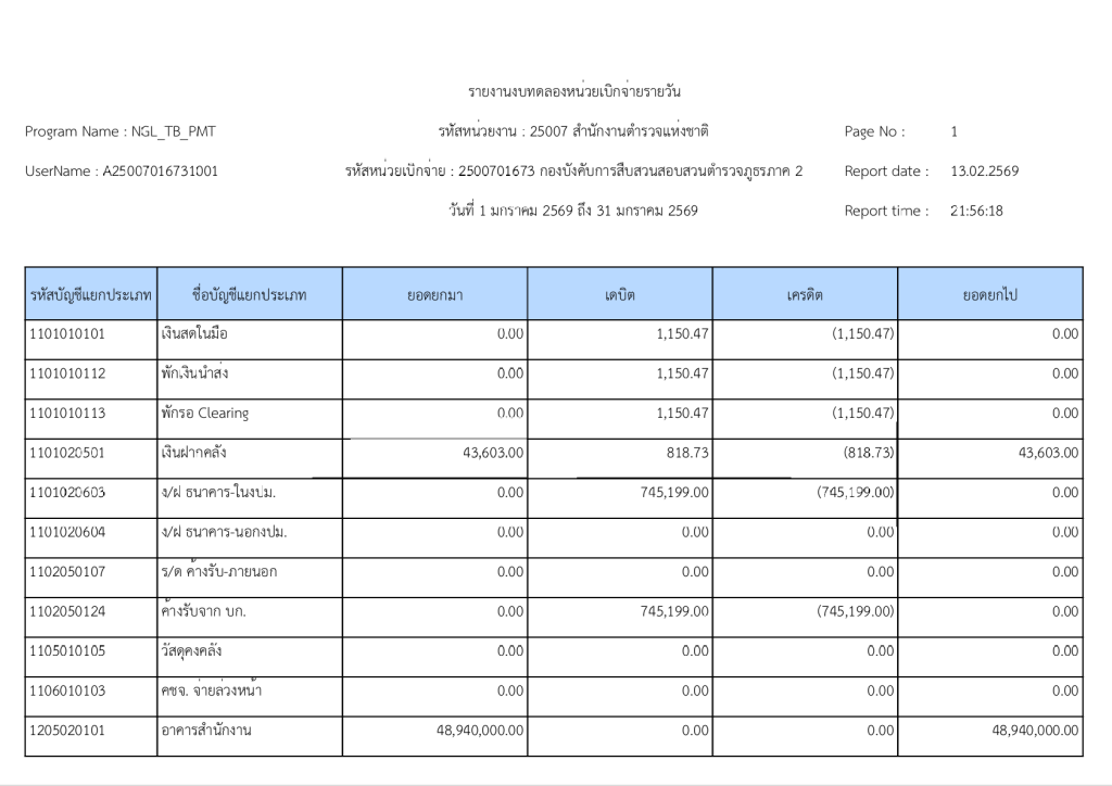 รายงานงบทดลองหน่วยเบิกจ่ายรายวัน ประจำเดือน มกราคม 2569 23 กุมภาพันธ์ 2026 โดย invp265 / ข่าวจัดซื้อจัดจ้าง,ข่าวจัดซื้อจัดจ้าง,งานการเงินและพัสดุ