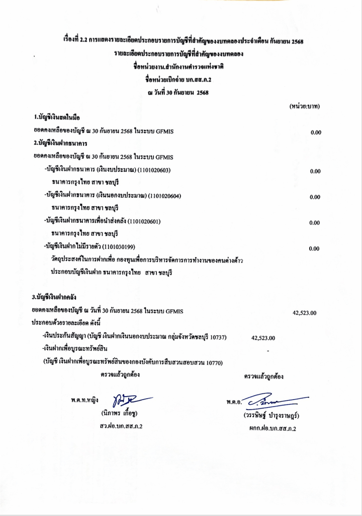 รายระเอียดประกอบรายการบัญชีที่สำคัญของงบทดลองประจำเดือน กันยายน 2568