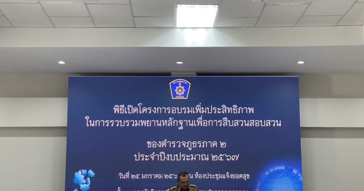 วันนี้ 25 ม.ค.67 เวลา 09.00 น. พล.ต.ต.ฉัตรชัย สุรเชษฐพงษ์ รอง ผบช.ภ.2 เป็นประธานเปิดอบรมโครงการเพิ่มประสิทธิภาพ ในการรวบรวมหลักฐานเพื่อการสืบสวนสอบสวน ของตำรวจภูธรภาค 2 ประจำปีงบประมาณ พ.ศ.2567 ณ ห้องประชุมแจ้งยอดสุข กองบังคับการสืบสวนสอบสวนตำรวจภูธรภาค 2