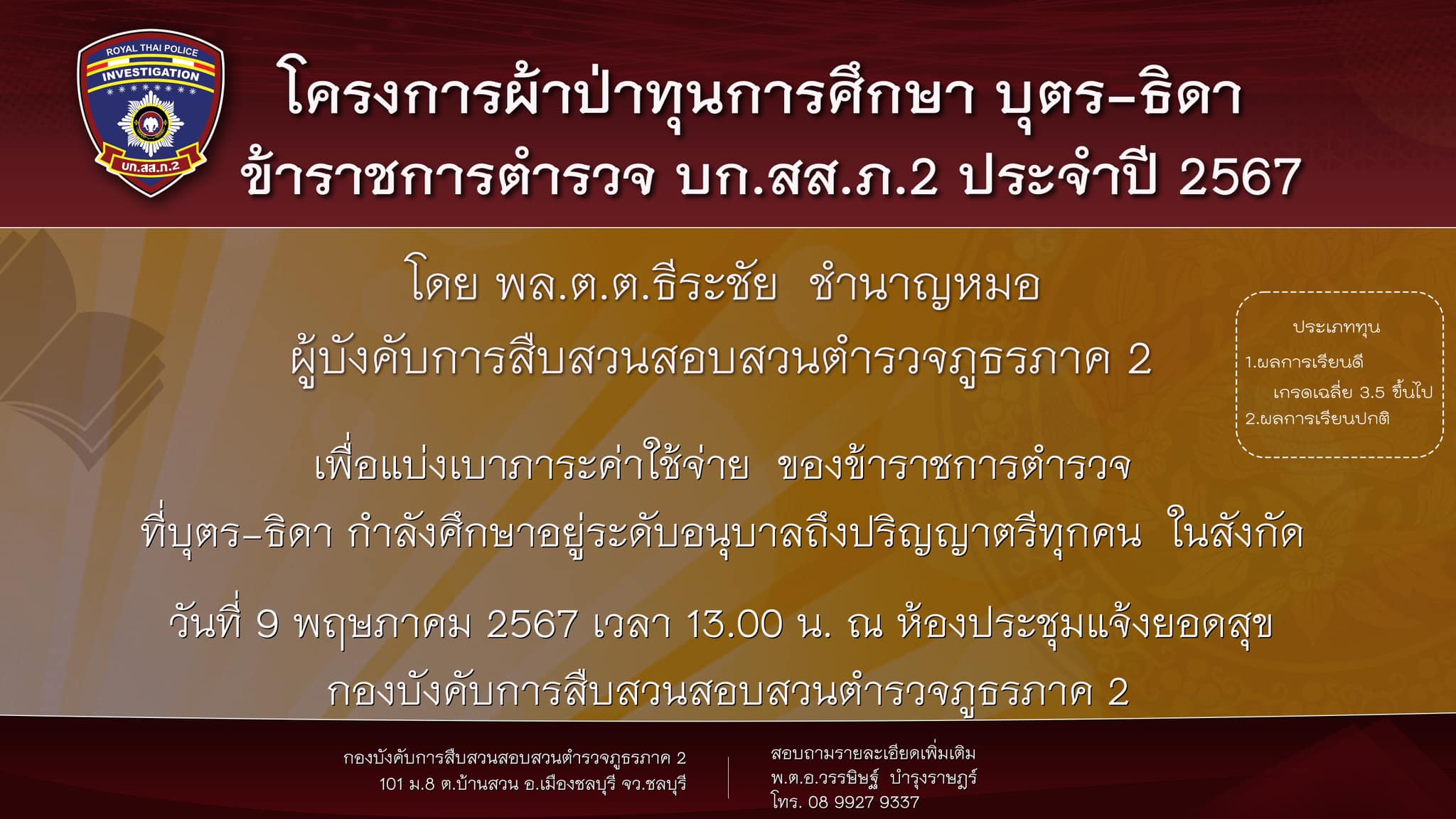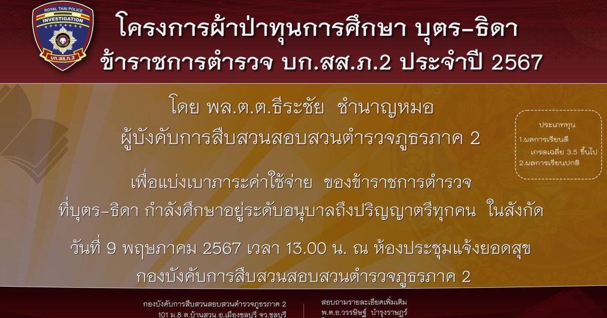 โครงการผ้าป่าทุนการศึกษา บุตร-ธิดา ข้าราชการตำรวจ บก.สส.ภ.2 ประจำปี 2567