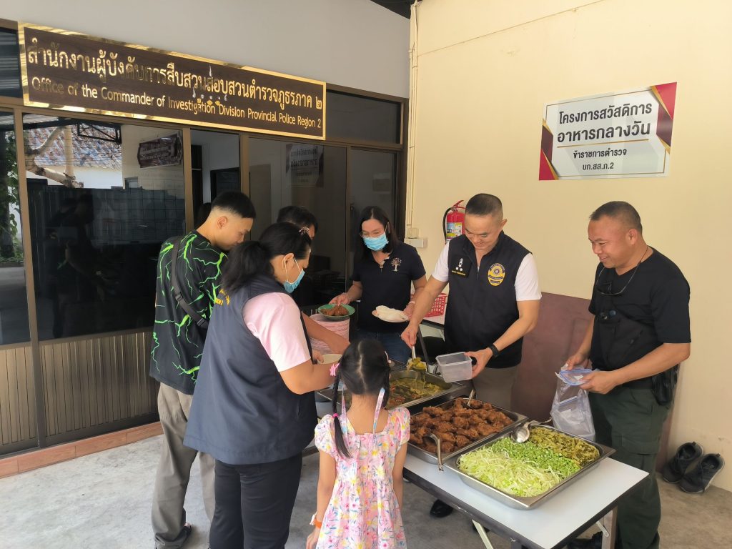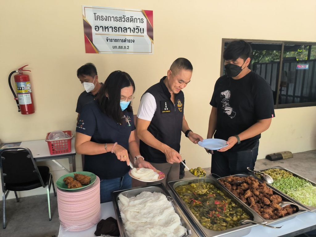วันนี้ 29 มี.ค.66 เวลา 11.30 น. พล.ต.ต.ธีระชัย ชำนาญหมอ ผบก.สส.ภ.2 ได้มอบหมาย ให้ พ.ต.อ.วราวุธ เจริญชนม์ รอง ผบก.สส.ภ.2 เป็นผู้แทนในโครงการสวัสดิการอาหารกลางวัน บก.สส.ภ.2 (ประจำทุกวันพุธ) ณ สถานที่ ลานหน้า ห้อง สนง.ผบก.สส.ภ.2 โดยมีข้าราชการตำรวจ ในสังกัด มาร่วมโครงการ จำนวนมาก เพื่อเป็นขวัญกำลังใจและลดค่าใช้จ่ายในการปฏิบัติหน้าที่ของเจ้าหน้าที่ บก.สส.ภ.2
