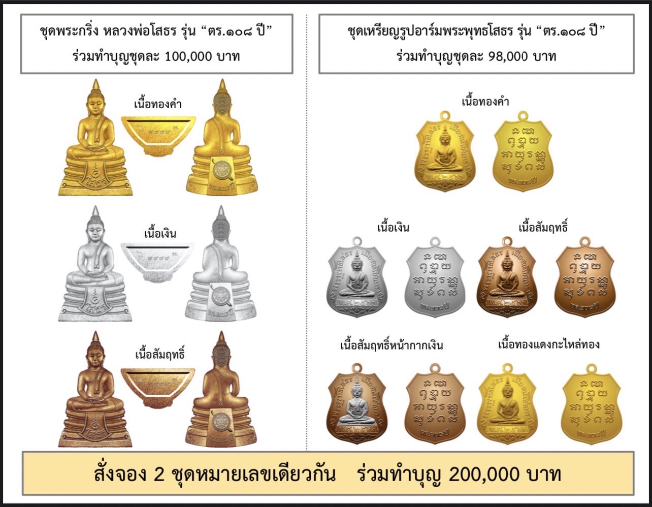 พระโสธร รุ่น ตร 108 ปีชุดทองคำ ชุดใหญ่ ตามภาพราคา 2 แสนบาท สร้าง 599 ชุด